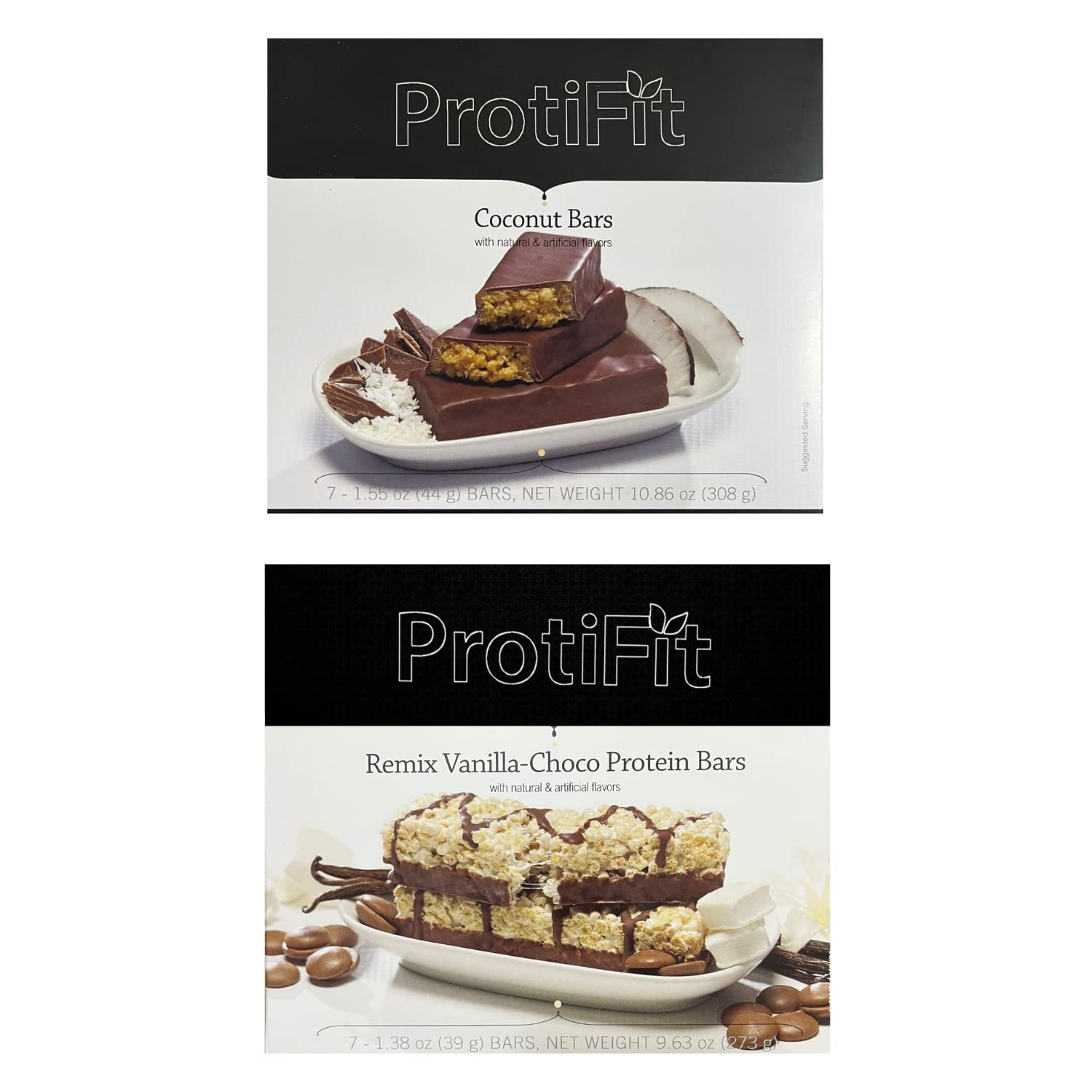 PROTIFIT - Low Calorie Coconut Crunch & Fluffy Nutter Protein Bar 2 Pack High Protein 15g Protein Low Carb Low Sugar Ideal Protein Compatible 7 Servings Per Box (2 Pack)