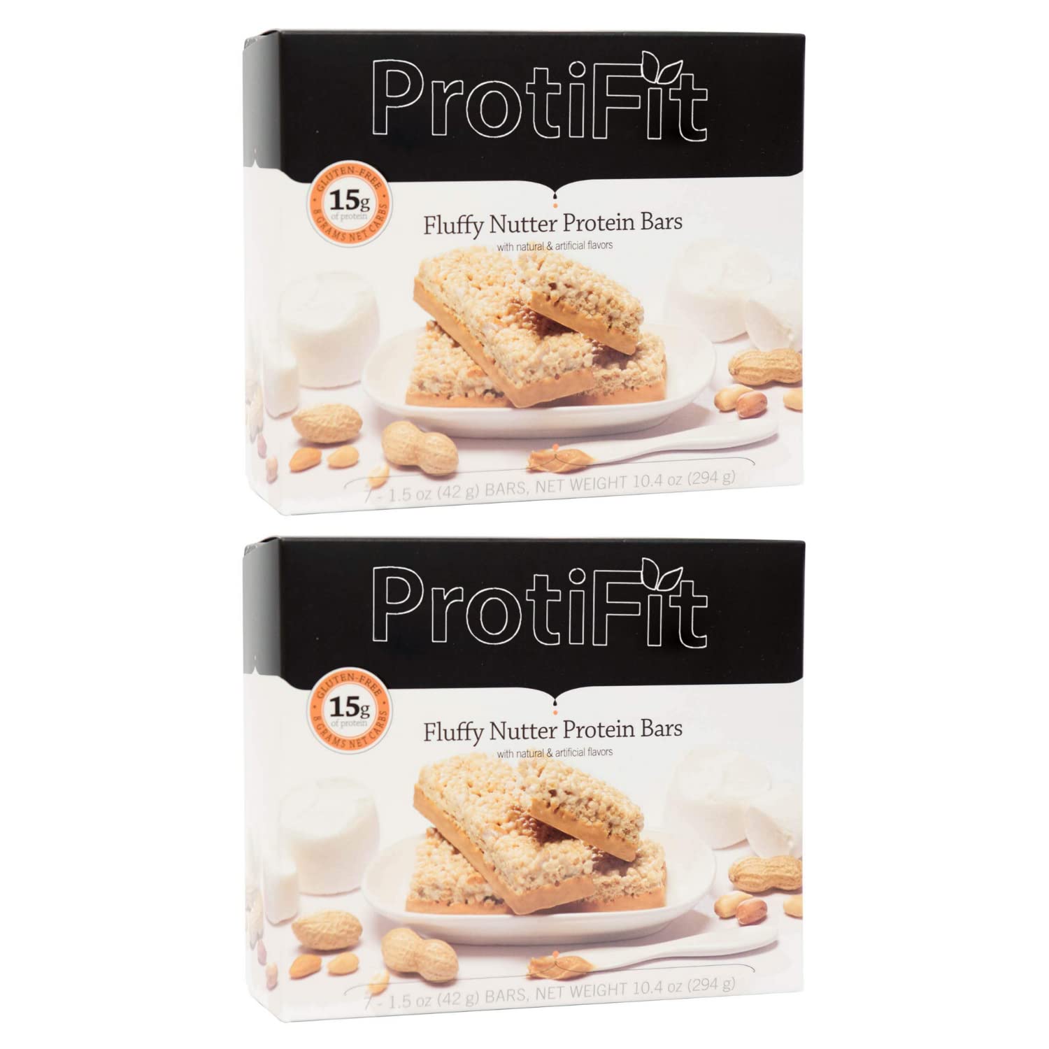 PROTIFIT - Low Calorie Fluffy Nutter Protein Bar 2 Pack High Protein 15g Protein Low Carb Low Sugar Ideal Protein Compatible 7 Servings Per Box (2 Pack)