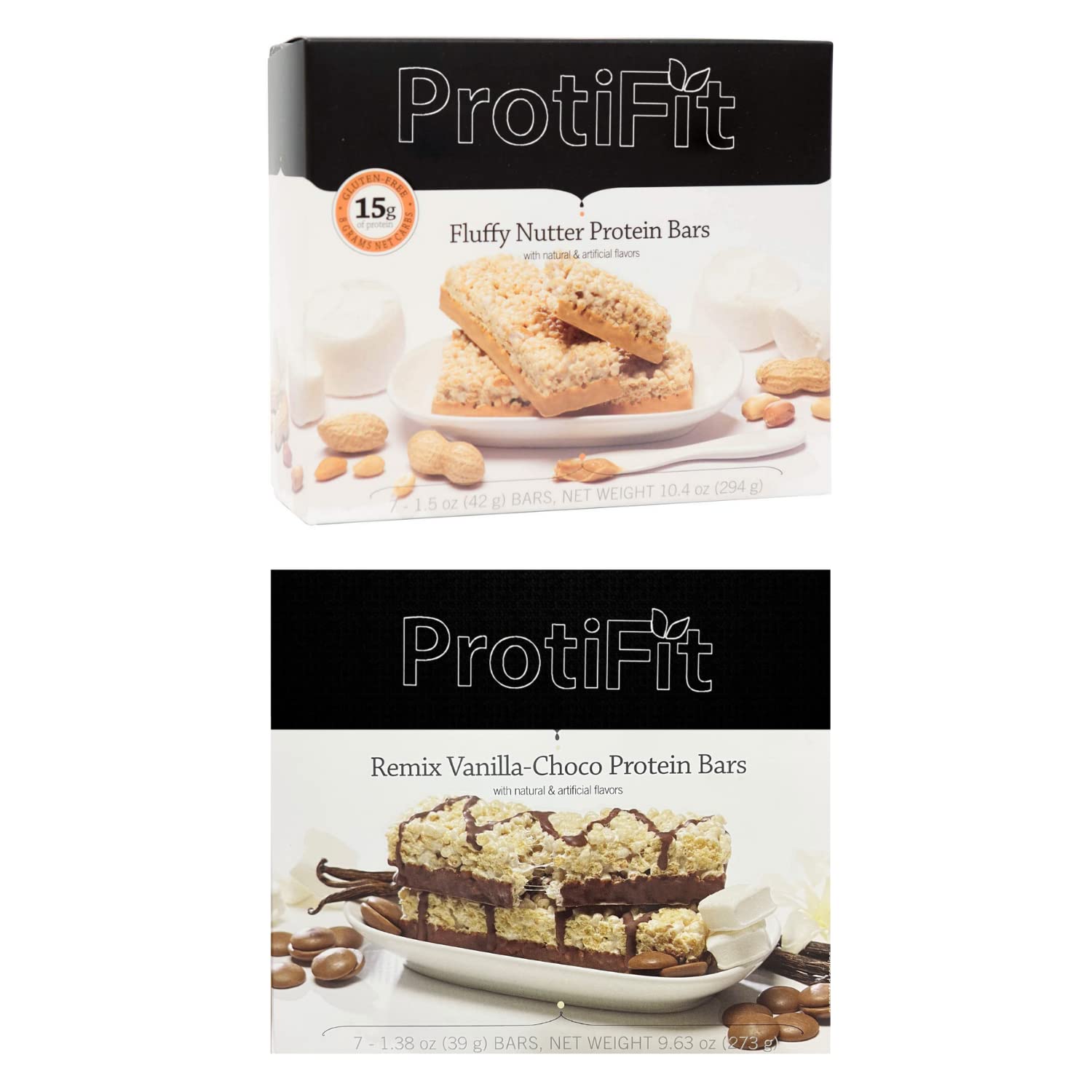 PROTIFIT - Low Calorie Fluffy Nutter & Remix Vanilla-Choco Protein Bar 2 Pack High Protein 15g Protein Low Carb Low Sugar Ideal Protein Compatible 7 Servings Per Box (2 Pack)