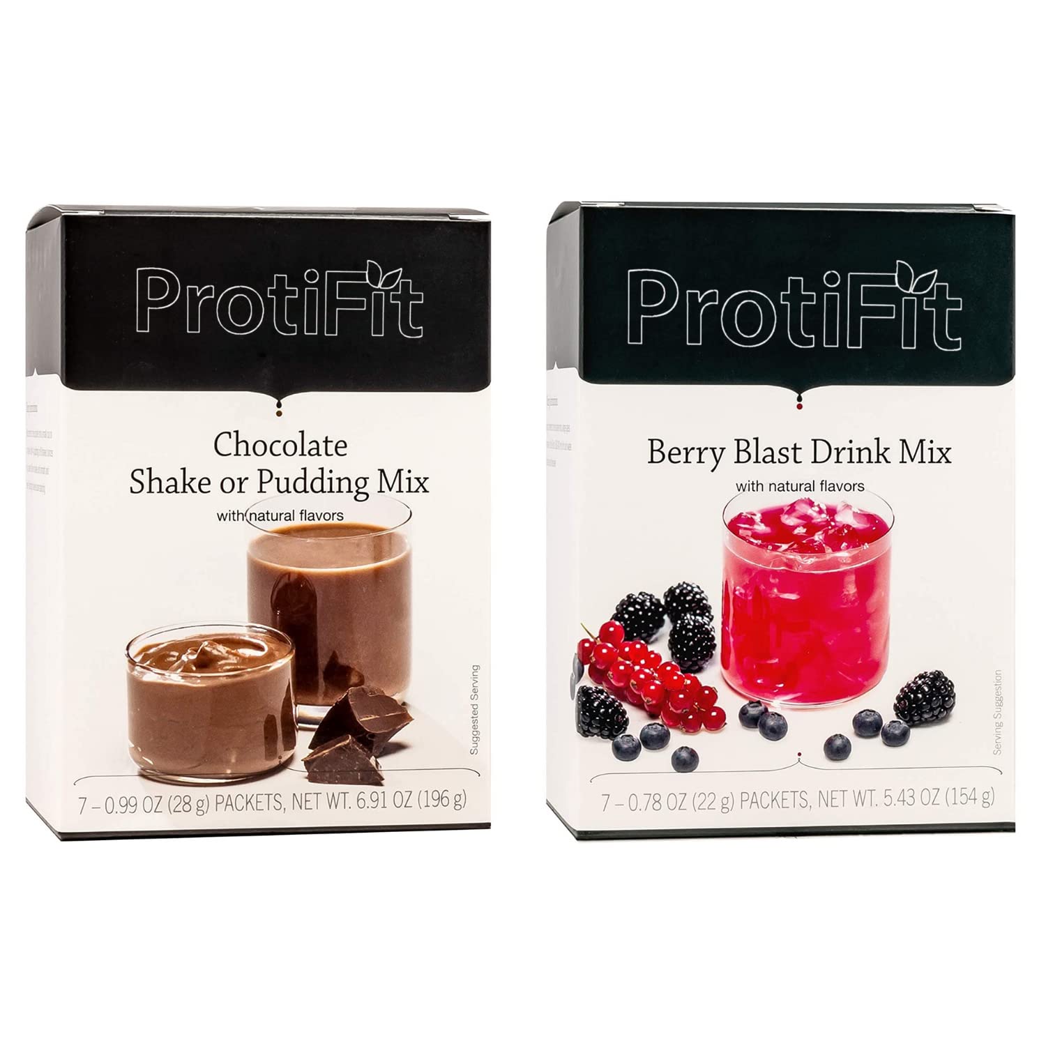 TRUSTED BRAND - PROTIFIT is committed to providing highly nutritional products that are supported by hospitals, physicians and clinics all over the country. GREAT FOR WEIGHT LOSS - The Berry Blast drink and chocolate pudding shake are a great addition for those on a weight loss diet. Each serving is compatible with the keto diet, gluten free, and low sugar diabetic diets. SUGAR FREE FRUIT DRINK - Enjoy fruit juice again without all the excess sugar! With only 70 calories and 1 net carb, you can enjoy the refreshing fruit taste without worrying about hurting your diet goals. GREAT TASTING CHOCOLATE PROTEIN POWDER - Our nutritious keto high protein chocolate shake or pudding tastes so good that you will have to double check the label. With only 100 calories and 4 net carbs you enjoy this dessert guilt free knowing that you made the healthy choice!. PROTEIN PACKED - Each serving of our Berry Blast protein drink and chocolate shake pudding is packed to the brim with 15 grams of healthy protein to help control hunger cravings. You will find after just one serving, you will feel more full and have more energy for longer throughout the day.