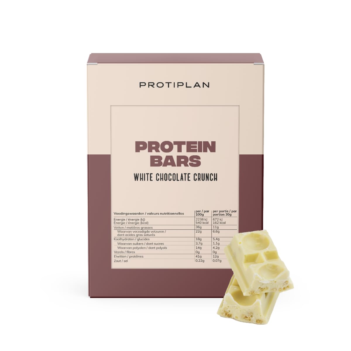 Protiplan White Chocolate Crunch bar is reduced in carbohydrates and high in protein. This bar is a delicious snack and is individually packaged. Easy to take with you on the go. ul liProtein-rich bar of white chocolate liCreamy taste of white chocolate with a nice crunch liReduced in carbohydrates ul INGREDIENTS span data-contrast none High protein w spanspan data contrast car itte chocolate with sweetener (30 ) and soy crispies (5 ). spanspan data-ccp-props {"201341983":0,"335559739":160,"335559740":259} spanspan data-contrast car White chocolate with sweeteners (30 ) [sweetener (maltitol), cocoa butter, full spanspan data contrast car milk spandata-contrast car powder,Protiplan - Protein Bars White Chocolate Crunch - 7 x 30 gram - Low carb snack - Eiwitrepen - Koolhydraatarme sportvoeding - Afslanken met proteïne repen Snel afvallen zonder hongergevoel! Protiplan Witte Chocolade Crunch reep is verlaagd in koolhydraten en eiwitrijk. Deze reep is een heerlijk tussendoortje en is per stuk verpakt. Gemakkelijk om mee te nemen voor onderweg. ul liEiwitrijke reep witte chocolade liRomige smaak van witte chocolade met een lekkere crunch liVerlaagd in koolhydraten ul INGREDIËNTEN span data-contrast none Eiwitrijke w spanspan data-contrast auto itte chocolade met zoetstof (30 ) en soja crispies (5 ). spanspan data-ccp-props {"201341983":0,"335559739":160,"335559740":259} spanspan data-contrast auto Witte chocolade met zoetstoffen (30 ) [zoetstof (maltitol), cacaoboter, volle spanspan data-contrast auto melk spanspan data-contrast auto poeder,