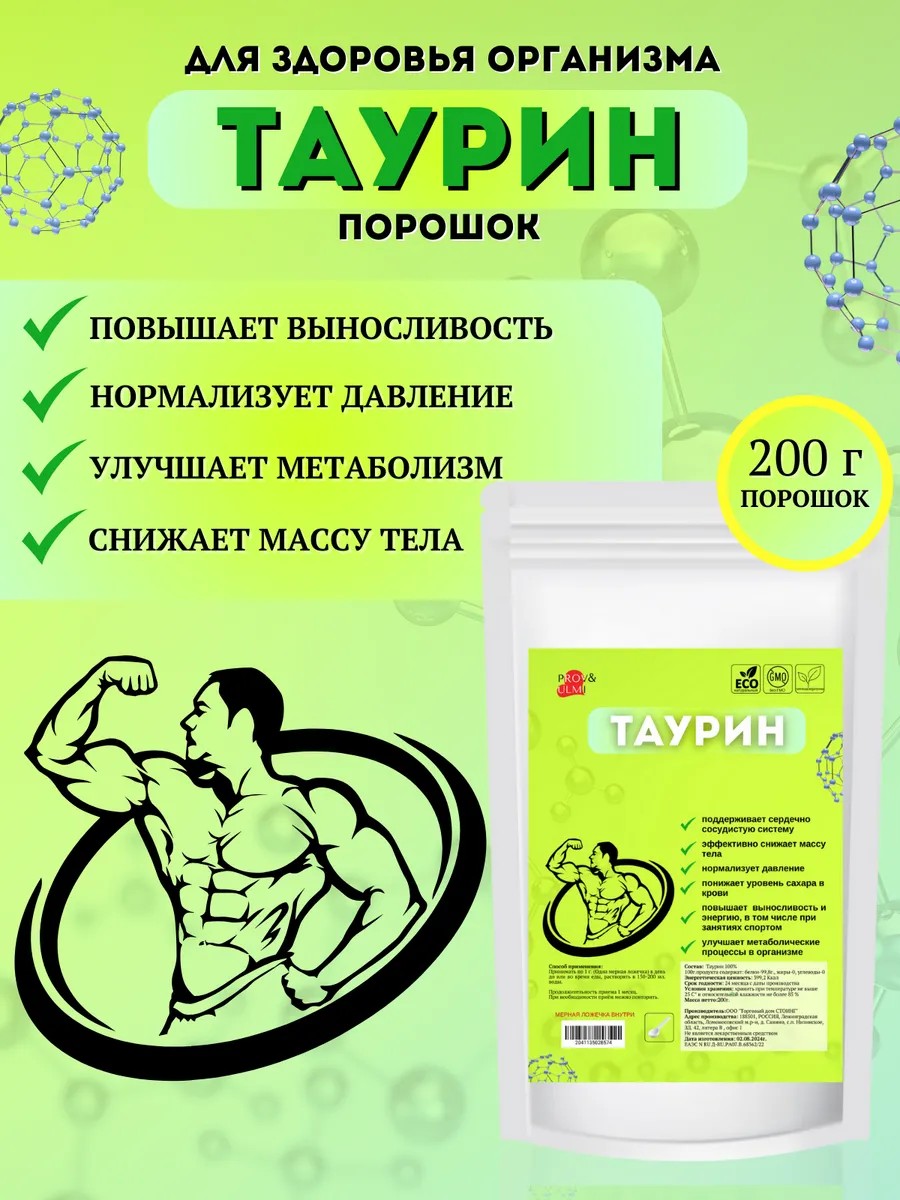 Таурин порошок 200г. - серосодержащая аминокислота, которая участвует во многих процессах организма, включая функционирование нервной системы, развитие мышц и поддержание здоровья сердца. Улучшает физическую выносливость и снижает уровень сахара в крови.