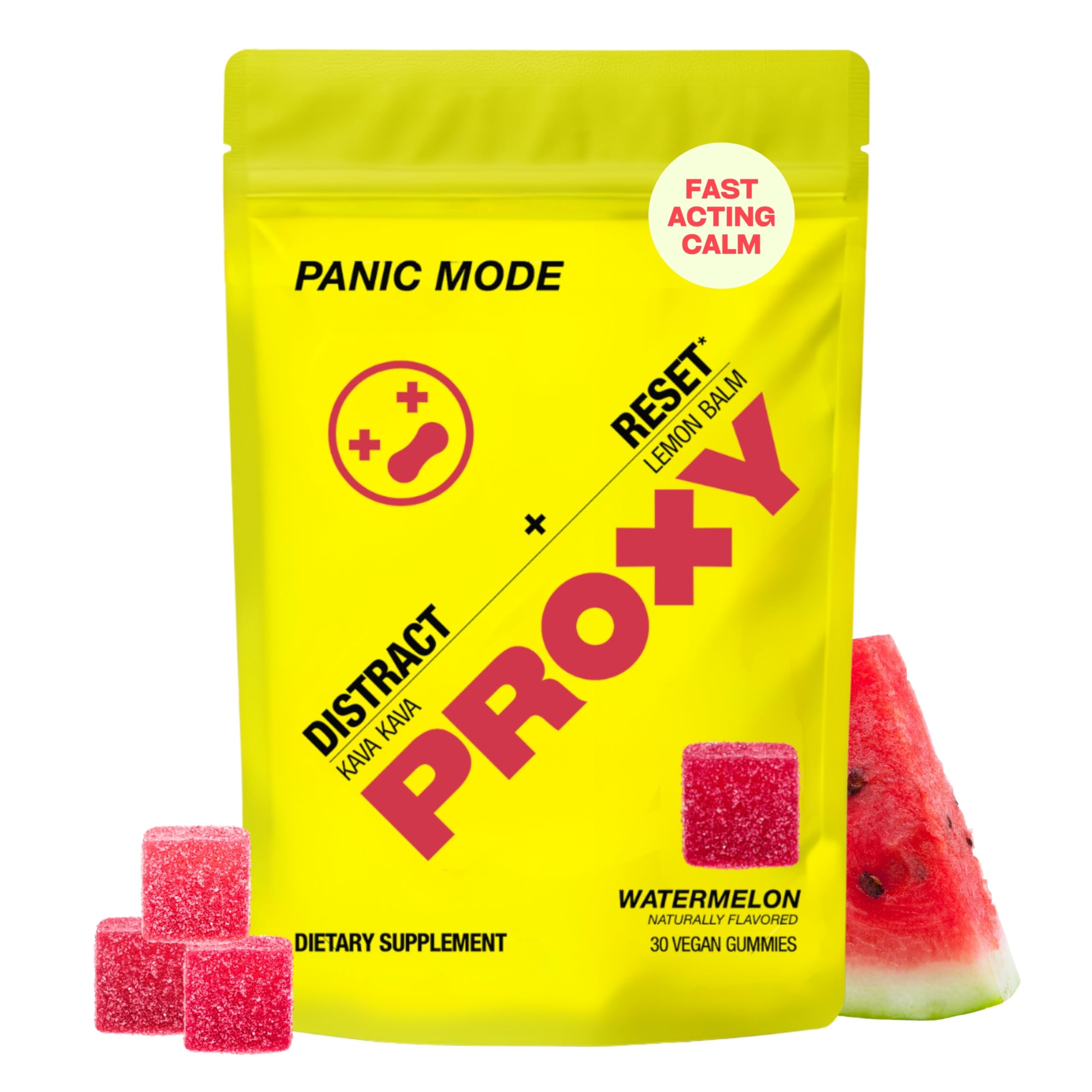 PROXY Fast-Acting Stress Relief Rescue Gummies | Natural Quick Calm with Kava Kava & Lemon Balm to Support Mental Relaxation, Cortisol Health | Non-Drowsy, Vegan, Natural Watermelon Flavor (30 Count)