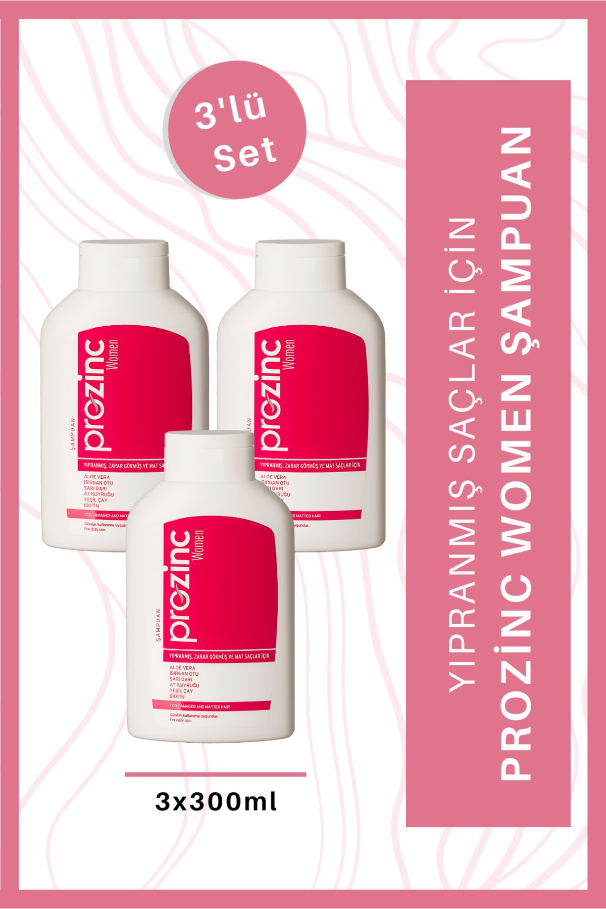 Prozinc Women Shampoo for Damaged and Processed Hair 3x300 Ml.