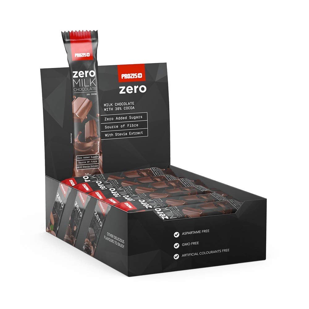 You always have a choice: 1 PLEASURE, GUILT-FREE! For days with more protein and less sugar. You know that feeling? The feeling of being so addicted to chocolate that you can't live without it? Yes?! Great! You no longer have to suppress that craving! Indulge yourself and eat as much chocolate as you want, guilt-free! It's ZERO and it's delicious! High in fiber and low in calories. All you have to do is choose one! ZERO DOUBT! Compared to a regular chocolate bar , Prozis Zero Dark Chocolate is the healthier option. Test your knowledge and discover the numbers: Prozis Zero Regular Dark Chocolate Carbohydrates 18g 7.5g Sugars 14g 0.9g Protein 1.5g 2.9g Compared to the reference product "Basic Report 1992, Chocolate, dark, 45-59 cocoa solids" (US Department of Agriculture National Nutrient Database - 218). Values per 3g. CHOOSE YOUR FAVORITE! Delicious and irresistible flavors! Milk Chocolate, Almond Milk Chocolate, Cereal Milk Chocolate, Dark Chocolate. DELICIOUSLY DESIGNED FOR: moms on the go, athletes, seniors, weight management, active people. BE WISE. No palm fat, no aspartame, no soy, no GMOs, vegetarian, no added sugar, source of fiber, low in calories. INGREDIENTS Sweeteners (Maltitol, Steviol Glycosides), Milk Powder, Cocoa Butter, Cocoa Mass, Inulin, Concentrated Butter (Milk), Whey Powder, Emulsifier (SOY Lecithin), Flavorings. Cocoa: 3 minimum. DIRECTIONS Enjoy as is. See moreProzis 24 x Zero Milk Chocolate 30 gDESCRIPTION DU PRODUIT DESCRIPTION DU PRODUIT Tu as toujours le choix 1 PLAISIR, SANS CULPABILISER! Pour des jours avec plus de protéines et moins de sucres. Tu connais cette sensation? La sensation d'être tellement accro au chocolat que tu ne peux pas t'en passer? Oui?! Super ! Tu n'as plus à réprimer cette envie ! Fais-toi plaisir et mange autant de chocolat que tu ne le souhaites, sans avoir à te sentir coupable ! C'est ZERO et c'est délicieux ! Riche en fibres et faible en calories. Il ne te reste plus qu'à en choisir un ! ZERO DOUTE! Comparé à une barre chocolatée ordinaire , le Zéro Dark Chocolat de Prozis est l'option la plus saine. Teste tes connaissances et découvre les chiffres: Chocolat Noir Ordinaire Zéro de Prozis Glucides 18 g 7.5 g Sucres 14 g .9 g Protéines 1.5 g 2.9 g Comparé au produit de référence "Basic Report 1992, Chocolat, dark, 45- 59 cacao solides" (Base de données nationale sur les nutriments du ministère de l'Agriculture des États-Unis - 218). Valeurs par 3g. CHOISIS TON PRÉFÉRÉ! Des saveurs délicieuses et irrésistibles! Chocolat au lait Chocolat au lait aux amandes Chocolat au lait aux céréales Chocolat noir DÉLICIEUSEMENT CONÇU POUR les mamans en déplacement les sportifs les personnes âgées la gestion du poids les personnes actives SOIS SAGE Sans graisse de palme Sans aspartame Sans soja Sans OGM Végétarien Sans sucres ajoutés Source de fibres Faible en calories INGRÉDIENTS Édulcorants ( Maltitol Glycosides de stéviol ), Lait en Poudre Beurre de Cacao Pâte de Cacao Inuline Beurre concentré ( Lait ), Lactosérum en poudre Émulsifiant ( Lécithine de SOJA ), Arômes Cacao : 3 minimum MODE D'EMPLOI Consommer tel quel Voir plus