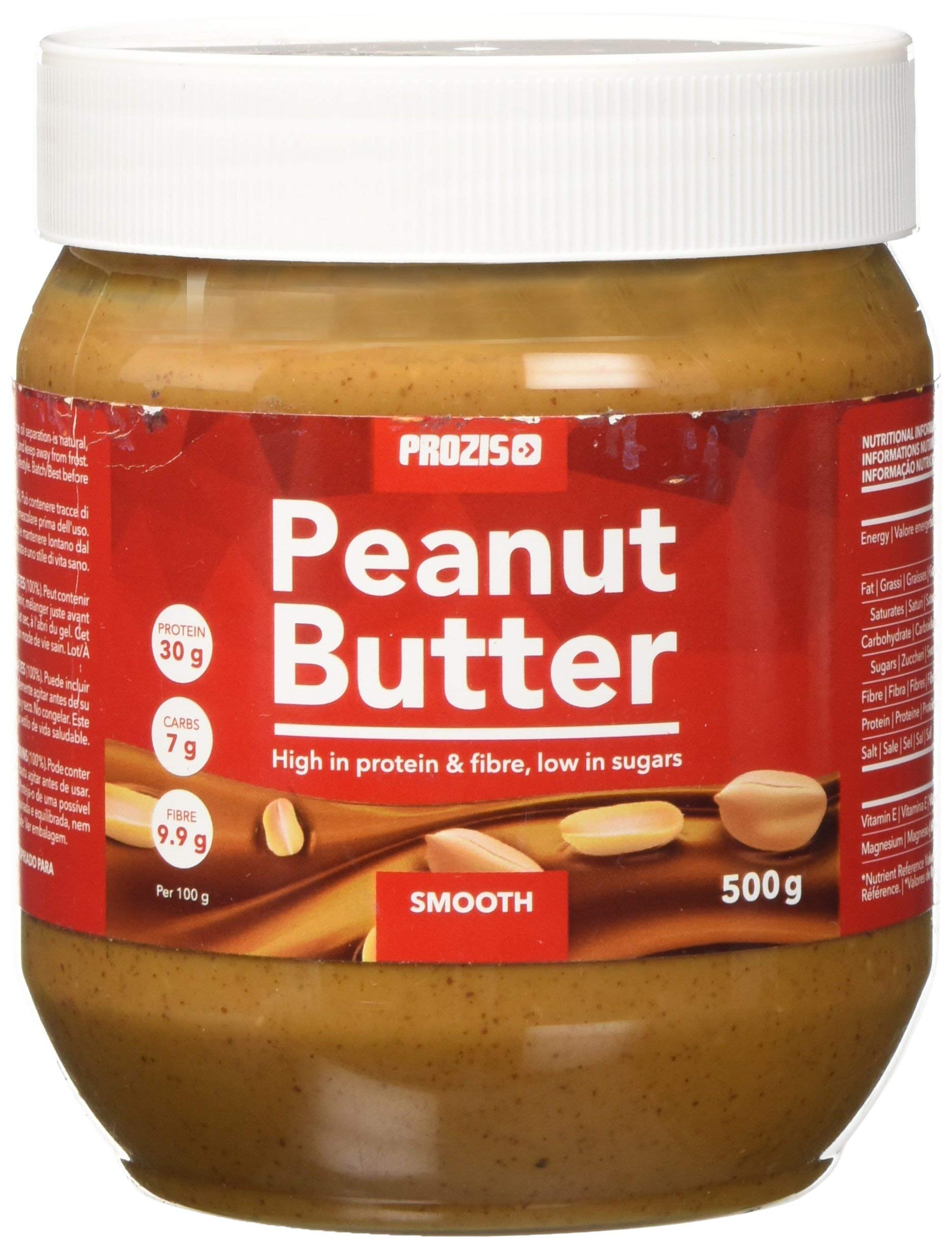 fiber, vitamin E, and magnesium. Magnesium is especially important for people who engage in physical activity, as it contributes to normal muscle function and protein synthesis and helps reduce tiredness and fatigue. One spoonful of this peanut butter provides you with significantly more protein and fewer carbohydrates than the same product you would find in the supermarket. Just think of it: in 100 grams of this peanut butter, 30 grams are protein and only 7 grams are carbohydrates. These nutrient quantities, combined with the overall nutritional composition and a formula free of added salt, hydrogenated oils, artificial sweeteners, or flavorings, make Prozis Foods Peanut Butter an excellent choice for anyone who wants only the best in nutrition. Prozis Foods Peanut Butter - Features: Natural formula, no artificial flavors or sweeteners. Excellent source of energy and protein. Rich in antioxidants, magnesium, and healthy fatty acids. More protein and fewer carbohydrates than traditional peanut butter. No added salt or transport fats. Suitable for vegans, Kosher, and Halal diets. INGREDIENTS Peanuts (100 ), Vitamin E, Magnesium. HOW TO USE You can spread it on bread, use it to make cakes, or to top risottos. Unleash your creativity in the kitchen! SAFETY WARNING Caution: Allergy sufferers. Contains peanuts. May contain traces of tree nuts. This product should not replace a varied and balanced diet and a healthy lifestyle. It is normal for the oil to separate slightly simply stir before use. Store in a tightly closed container in a dark, cool, and dry place, and protect from frost. See moreProzis Foods Beurre d'Arachidi 4 x 500 gDESCRIPTION DU PRODUIT DESCRIPTION DU PRODUIT Br Peanut Butter - Délice crémeuse pour une collation nourrissante br Prozis Foods - Beurre de cacahuète est obtenu à partir d'un seul ingrédient, les cacahuètes, pour une crème naturelle et délicieuse ou comme ingrédient à ajouter à vos smoothies. br En plus d'être une ressource protéine saine pour le développement musculaire et une riche source d'acides gras pour le rendement énergétique, les cacahuètes fournissent également une quantité considérable de fibres, de vitamine E et de magnésium. Le magnésium est particulièrement important pour les personnes qui effectuent des activités physiques, car il contribue à la fonction musculaire normale et à la synthèse des protéines et aide à réduire la fatigue et la fatigue. Br Une cuillère de ce beurre de cacahuète vous fournit beaucoup plus de protéines et moins de glucides que le même produit que vous trouverez au supermarché. Il vous suffit de faire deux contents: dans 100 grammes de ce beurre de cacahuètes, 30 grammes sont de protéines et seulement 7 grammes sont de glucides. Ces quantités de nutriments, associées à la composition nutritionnelle globale, à une formule sans sels ajoutés, huiles hydrogénées, édulcorantes ou aromatisantes artificiels, font du Prozis Foods - Beurre de cacahuète un excellent choix pour tous ceux qui ne veulent que le meilleur de la nutrition. Prozis Foods Peanut Butter - Caractéristiques : Formule naturelle, sans arômes ni édulcorants artificiels. Excellente source d'énergie et ressource de protéines Riche en antioxydants, magnésium et acides gras bons Plus de protéines et moins glucides qu'un beurre traditionnel de cacahuètes Sans sels ajoutés et sans graisses du transport. Convient pour ceux qui suivent une alimentation végétalienne, Kosher et Halal INGRÉDIENTS Arachides (100 ), Vitamine E, Magnesium. MODE D'EMPLOI Vous pouvez l'étaler sur le pain, l'utiliser pour préparer des gâteaux ou pour mantecter des risottis. Laissez libre cours à votre imagination dans la cuisine AVERTISSEMENT DE SÉCURITÉ Attention : sujets allergiques Contient des arachides. Peut contenir des traces de fruits à coque. Ce produit ne doit pas remplacer une alimentation variée et équilibrée et un mode de vie sain. Il est normal que l'huile se présente en partie séparée : il suffit de mélanger avant utilisation. Conserver dans un pot bien fermé dans un endroit sombre, frais et sec et garder à l'abri du gel. Voir plus