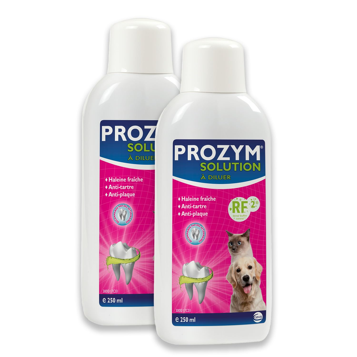 PROZYM - Pack of 2 Dental Solutions to dilute for Dogs and Cats - No. 1 among veterinarians - Fresh breath - Anti-tartar - Anti-Plaque - Healthy gums