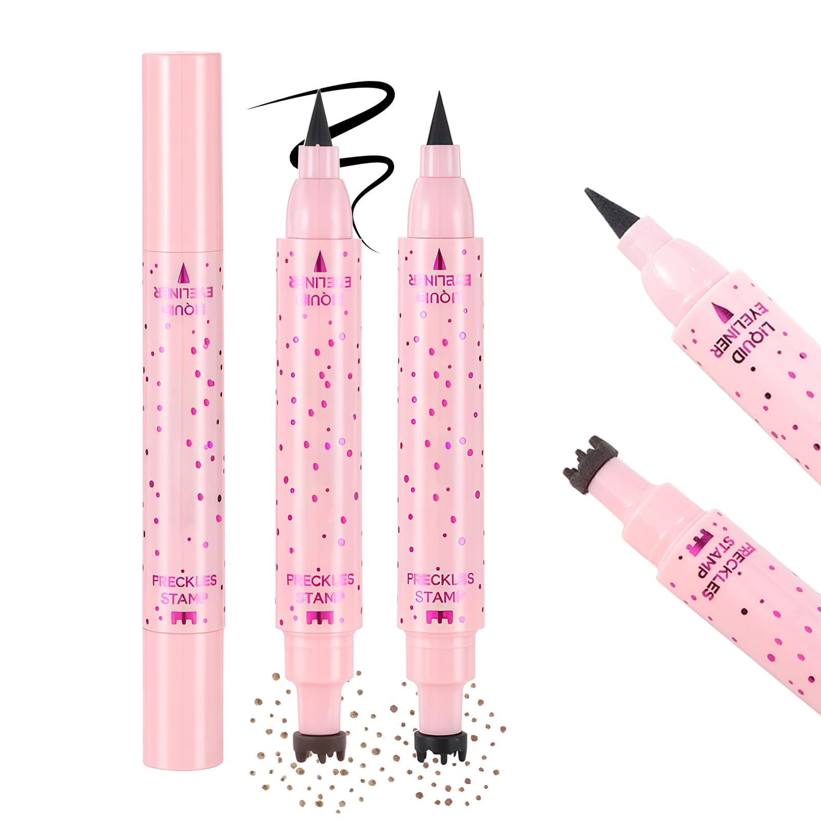 Features: Name: 2-in-1 Faux Freckle Eyeliner Pen Color: 01 Light Freckle Black Eyeliner 02 Medium Freckle Black Eyeliner 03 Dark Freckle Black Eyeliner 04 Espresso Freckle Black Eyeliner Pen Size: 12.7 x 1.6 x 1.6 cm Features: The cheeky stencil pen is designed to create natural-looking makeup and conceal imperfections more quickly. Four faux freckle pen colors to choose from, suitable for all skin tones and can be used with all types of makeup. A combination of brown pencil and black eyeliner, the double-ended design simplifies makeup application and makes it easy to use at any time. Tips: For external use only. Keep out of reach of children. Please store in a cool place and avoid direct sunlight. Continue use if signs of irritation occur.Ideal for makeup: The cheeky faux liner pen is soft and natural-looking, available in four colors to match a variety of makeup looks. Suitable for all skin tones, it's easy and casual to use for a realistic and natural makeup effect. Use this cheeky pen to enhance your makeup for everyday wear, parties, Halloween, Christmas, and other holiday events. All-day makeup: The 2-in-1 makeup pen has a smudge-proof and quick-drying formula, so you don't have to worry about eye makeup smudges and can create a flawless, long-lasting look. Even if you sweat on a hot summer day, it will still leave your makeup looking natural and radiant. Precise eye tip: The ultra-precise tip of the eyeliner is flexible and easy to use, and each application is incredibly smooth, creating a clear and precise line. Smudge-proof, waterproof, and puddle-proof for a perfect, long-lasting look. Unique Ballpoint Pen: Compared to ordinary pens, this liquid pen has five different sizes for faster, more effervescent face makeup. Achieve a natural, highly realistic makeup look with just a few taps on your cheeks. 2-in-1 Eyeliner and Freckle Pen: This unique makeup pen design features black eyeliner on one end and an effervescent pad on the other. The dual-ended design combines makeup tools, allowing you to create both a bold, freckled look and a waterproof eyeliner look all in one place.Prreal Lot de 2 stylos eyeliner Freckle 2 en 1 Freckle Stamp and Black Liquid Eyeliner Waterproof Natural Lifelike Freckles Makeup Soft Sopt Pen Magic Faux Freckles 01 Marron clair 03 Marron foncé 01 marron clair 03 marron foncéDESCRIPTION DU PRODUIT Caractéristiques : Nom : stylo eyeliner 2 en 1 faux freckle Couleur : 01 Light Freckle Black Eyeliner 02 Medium Freckle Black Eyeliner 03 Dark Freckle Black Eyeliner 04 Espresso Freckle Black Eyeliner Taille du stylo : 12,7 x 1,6 x 1,6 cm. Caractéristiques : Le tampon effronté est conçu pour créer un maquillage naturel comme des imperfections plus rapidement. Quatre couleurs de faux stylos au choix, adaptés à tous les tons de peau et peuvent être utilisés avec toutes sortes de maquillage. Une combinaison de crayons marron et de eye-liner noir, le design à double extrémité simplifie les outils de maquillage et le rend facile à toucher à tout moment. Conseils : Pour un usage externe uniquement. Tenir hors de portée des enfants. Veuillez le placer dans un endroit frais et éviter la lumière directe du soleil. Utilisation continue en cas de signes d'irritation.Idéal pour le maquillage : le faux stylo effronté est doux et naturel en couleur, disponible en quatre couleurs pour correspondre à une variété de looks de maquillage, adapté à tous les tons de peau, facile et décontracté pour donner un effet de maquillage réel et naturel. Utilisez ce stylo effronté pour embellir le maquillage dans la vie quotidienne, les fêtes, Halloween, Noël et d'autres événements de vacances. Maquillage tout au long de la journée : le stylo de maquillage 2 en 1 a une formule résistante aux bavures et à séchage rapide, de sorte que vous n'avez pas à vous soucier de vos taches de maquillage des yeux et vous pouvez créer un look irrégulier et durable. Même si vous transpirez par une chaude journée d'été, il laissera toujours un maquillage naturel et éclatant. Astuce précise pour les yeux : la pointe ultra précise de l'eye-liner est flexible et facile à utiliser, et chaque application est incroyablement lisse, créant une ligne claire et précise. Résistant aux taches, à l'eau et aux flaques pour un look parfait et durable. Stylo à bille unique : comparé aux stylos ordinaires, ce stylo liquide a cinq tailles différentes pour un maquillage plus rapide et effervescent sur le visage. Obtenez un maquillage naturel et très réaliste en quelques clics sur vos joues. Stylo 2 en 1 pour eyeliner et freckle : ce design unique de stylo de maquillage dispose d'un eye-liner noir à une extrémité et d'un tampon effervescent sur l'autre. Le design à double extrémité diffuse des outils de maquillage en complétant le maquillage effronté et un look eye-liner imperméable en un seul endroit.