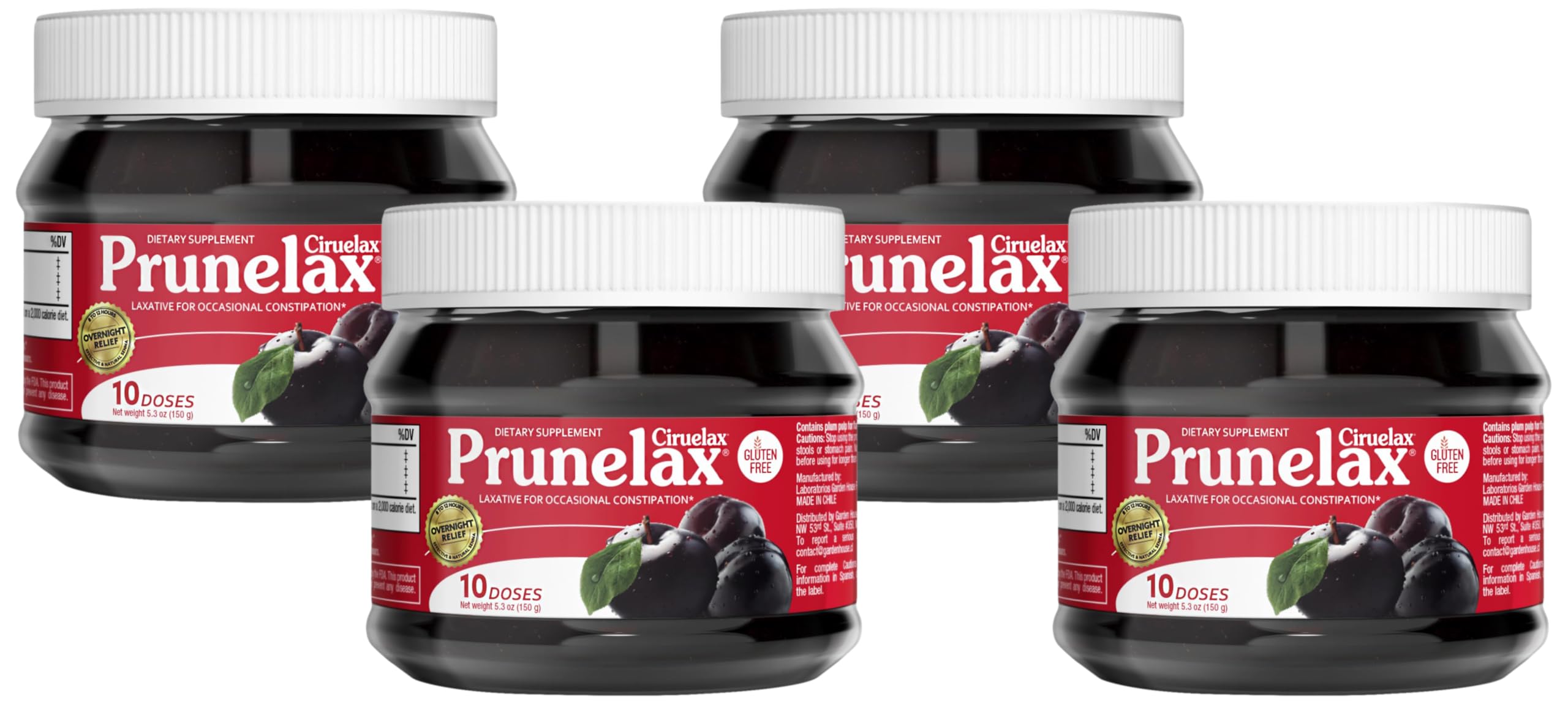 Prunelax Ciruelax Regular Strength Laxative Jam - Vegan & Gluten-Free Natural-Ingredient Laxative for Occasional Constipation - 5.3 oz (Pack of 4)