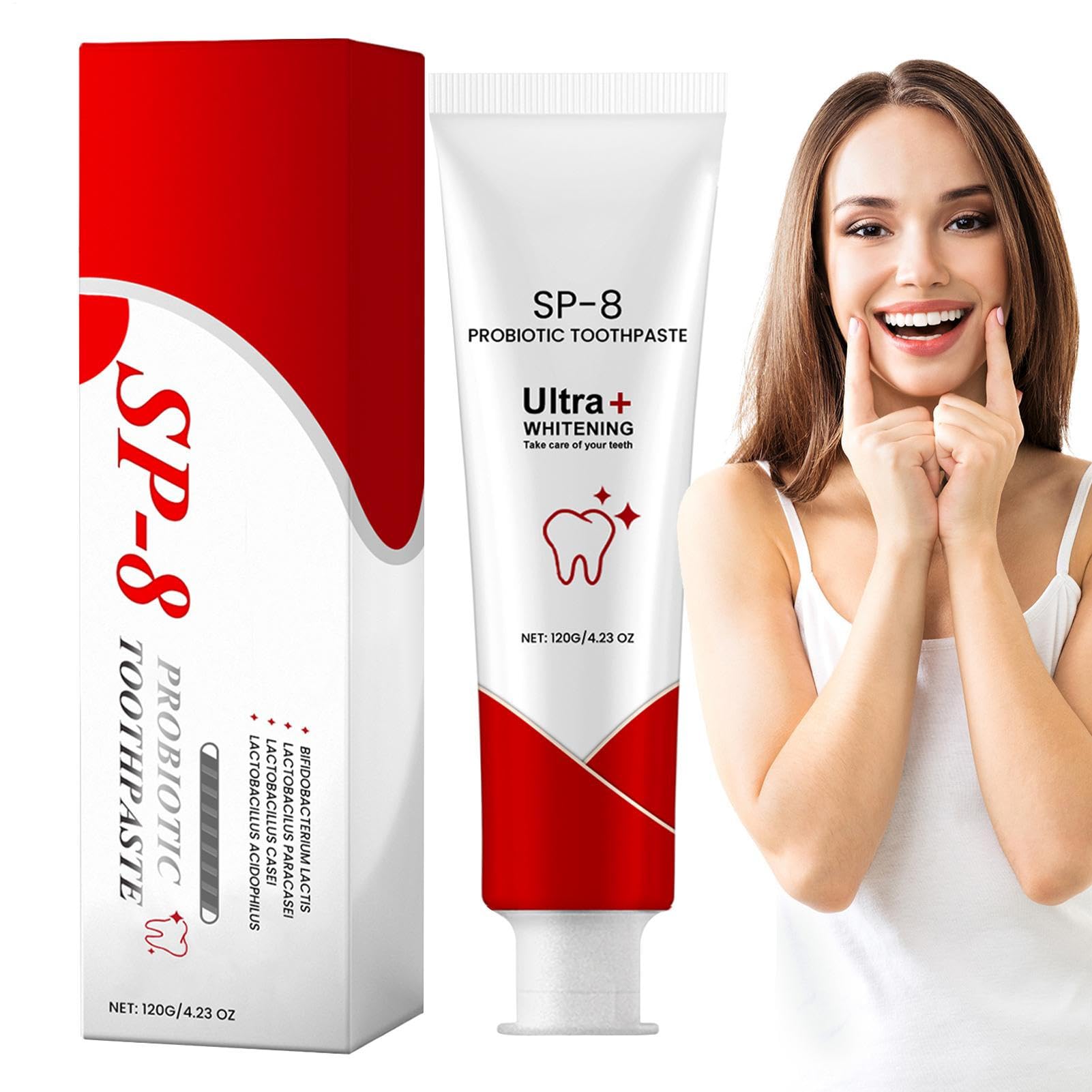 This probiotic toothpaste is perfect for restoring your oral health. It thoroughly cleanses your mouth, combats the cause of bad breath and effectively removes years of stains caused by coffee, tea and wine stains. The use of mild natural ingredients makes it a great choice for family and friends. Specifications: Net content: 120 g. Effect: brightens teeth, maintains oral health and refreshes Contents of the delivery: 1 x Probiotic Toothpaste Note: Due to the light and screen setting difference, the item's color may be slightly different from the pictures. Please allow 1-2cm difference due to manual measurement.Careful Gift: Redefine oral care with our probiotic toothpaste, which not only removes stains, but also promotes oral health and increases the radiance and confidence of your smile. A perfect choice for family and friends. Mild Ingredients: Enjoy a gentle yet effective cleaning experience with our probiotic toothpaste, which contains no harsh abrasives, but only mild natural ingredients that ensure safety for all teeth and gums. Supportive gum care: this probiotic toothpaste is specially designed to care for your mouth. It relieves gum complaints, relieves sensitivity and is ideal for bleeding gums or periodontitis. Long-lasting cleaner: By effectively combating the cause of bad breath, our probiotic toothpaste ensures that teeth stay fresh for longer and your mouth is thoroughly cleaned. Tooth Stain Remover: Your smile will confidently shine after using our probiotic toothpaste, as the advanced formula targets tooth pigmentation, effectively removing years of stubborn coffee, tea and wine stains.Probiotische tandpasta, probiotische witmakende tandpasta, 120 g, tandenvlekverwijderaar, verfrist slechte adem, wellness-tandpasta voor gezond tandvlees Deze probiotische tandpasta is perfect voor het herstellen van je mondgezondheid. Het reinigt je mond grondig, bestrijdt de oorzaak van slechte adem en verwijdert effectief jarenlange vlekken die door koffie-, thee- en wijnvlekken zijn ontstaan. Door het gebruik van milde natuurlijke ingrediënten is het een geweldige keuze voor familie en vrienden. Specificaties: Netto inhoud: 120 g. Effect: verheldert de tanden, behoudt de mondgezondheid en verfrist de Inhoud van de levering: 1 x probiotische tandpasta. Opmerking: Vanwege het verschil in licht- en beeldscherminstellingen kan de kleur van het artikel enigszins afwijken van de afbeeldingen. Houd rekening met een verschil van 1-2 cm vanwege handmatige meting.Zorgvuldig cadeau: herdefinieer mondverzorging met onze probiotische tandpasta, die niet alleen vlekken verwijdert, maar ook de mondgezondheid bevordert en de uitstraling en het zelfvertrouwen van je glimlach verhoogt. Een perfecte keuze voor familie en vrienden. Milde ingrediënten: geniet van een zachte maar effectieve reinigingservaring met onze probiotische tandpasta, die geen scherpe schuurmiddelen bevat, maar alleen milde natuurlijke ingrediënten die veiligheid voor alle tanden en tandvlees garanderen. Ondersteunende tandvleesverzorging: deze probiotische tandpasta is speciaal ontworpen om uw mond te verzorgen. Het verlicht tandvleesklachten, verlicht gevoeligheid en is ideaal bij bloedend tandvlees of parodontitis. Langdurig schoner: door onze probiotische tandpasta effectief de oorzaak van slechte adem te bestrijden, zorgt het ervoor dat de tanden langer fris blijven en je mond grondig wordt gereinigd. Tandvlekkenverwijderaar: je glimlach zal zelfbewust stralen na het gebruik van onze probiotische tandpasta, omdat de geavanceerde formule gericht is op tandpigmentatie en zo jarenlang hardnekkige koffie-, thee- en wijnvlekken effectief verwijdert.