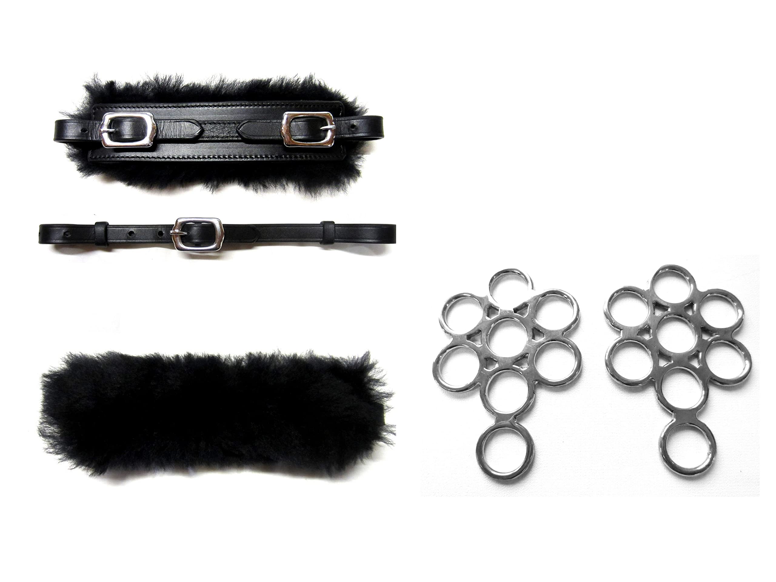 This set is equipped with a nose strap padded made of soft, real sheepskin. The Flower Hackamore can be snacked on like any other bite -free bridle. This Flower Hackamore is characterized by precise action and the possibility of being able to correctly put a horse, even without iron in the mouth.A padded nose strap is particularly recommended for horses that are sensitive in the nasal and mouth area. In the case of bite acids or highly sensitive horses that may have been ridden very hard or were very extremely ""edited"" with the Serreta, a much softer nose right is very suitable. The nose strap has an adjustability between 24-28 cm in length.(Can be extended to max. 30 cm with additional holes) The chin strap has an adjustability between 21 - 32 cm in length.(Can be continuously shortened with additional holes) With the ""silver"" color, this bridle is an optically beautiful appealing alternative among the bitless stomach. Material: stainless steel - leather Color: silver - brown, silver - black Delivery: Flower hackamore with real sheepskin padded nose strap and variable adjustable chin straps.There is space for other holes.