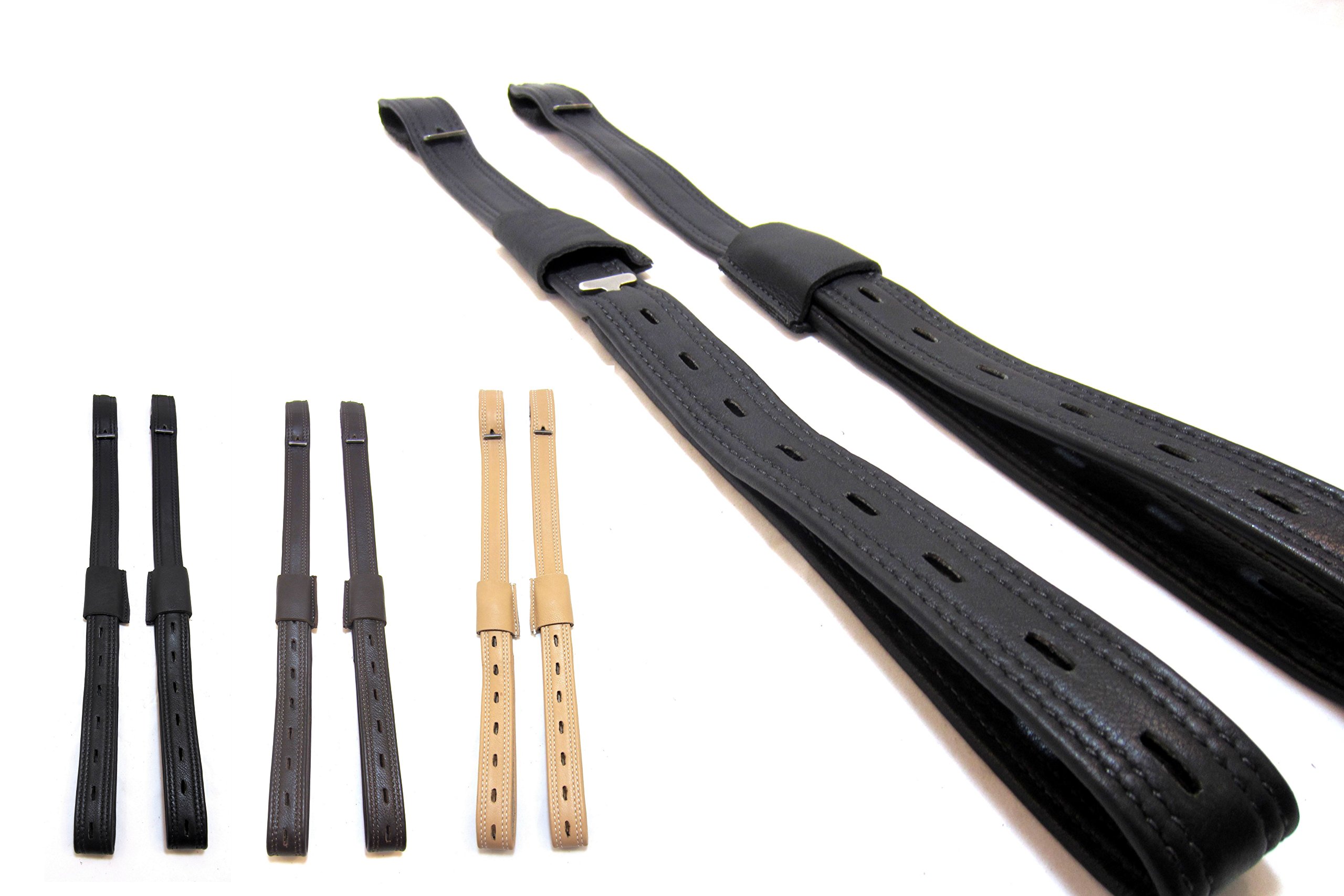 These mono stirrup straps made of soft leather have the great advantage that you do not apply twice as conventional stirrup straps in length.So you can feel the strap less under the leaf, on the rider's leg as well as on the thigh in the area of the suspension.The straps have a very robust nylon core and are covered with soft leather.Due to a T-hook at the top of the suspension, the straps can be used for open or closed suspensions.The length is also easily set using a second T-hook.This is equipped with a cover for protection.Width: approx. 2.7 cm Riemendicke simple: approx. 5 mm, at the end of the T - hook suspension but 8 mm thick!Colors: black, brown or nature Length: S short approx. 32-48 cm (for tabs approx. 100 cm - 150 cm) corresponds to a short children strap with approx. 100 cm.Length: m medium approx. 44-60 cm (for tab height approx. 150 cm - 180 cm) corresponds to a normal belt with approx. 140 cm.Length: L long approx. 58-72 cm (for tab height approx. 175 cm - 190 cm) corresponds to a longer strap with approx. 150 cm.Delivery in pairs