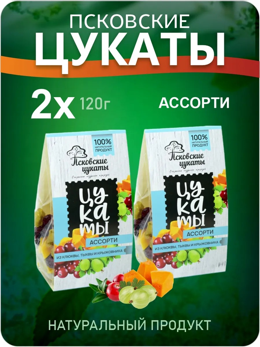 Псковские цукаты Натуральные цукаты Ассорти вкусов, 2 шт