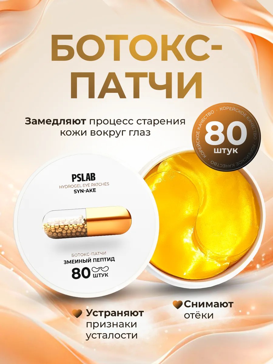 Омолаживающая косметика ПСЛАБ корейского производства имеет эффект ботокса и особенно полезна будет для возрастного типа (45+, 50+ и 55+, 60+, 65+), однако использовать ее могут девушки подростки и молодые женщины (30+, 35+, 40+). Золотые гелевые патчи с блестками гипоаллергенны, что делает их прекрасным вариантом для повседневного использования.