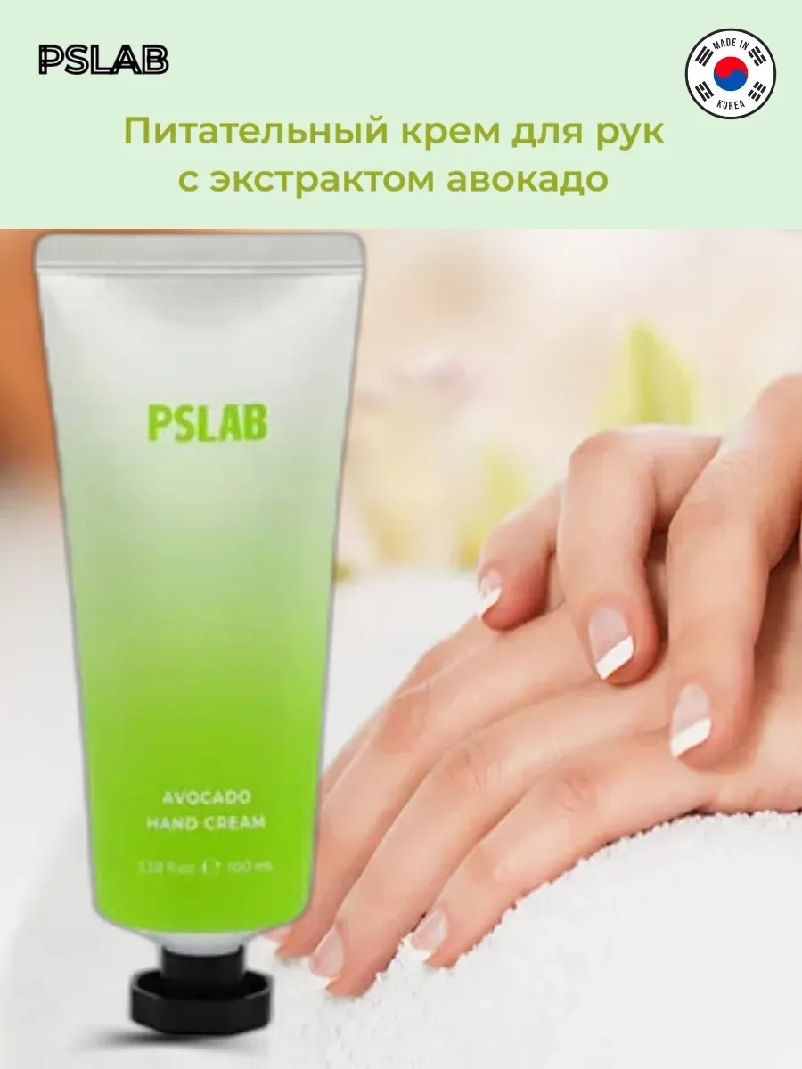 Питательный крем для рук с экстрактом авокадо PSLAB AVOCADO объёмом 100 мл — средство для увлажнения, смягчения и питания кожи рук.