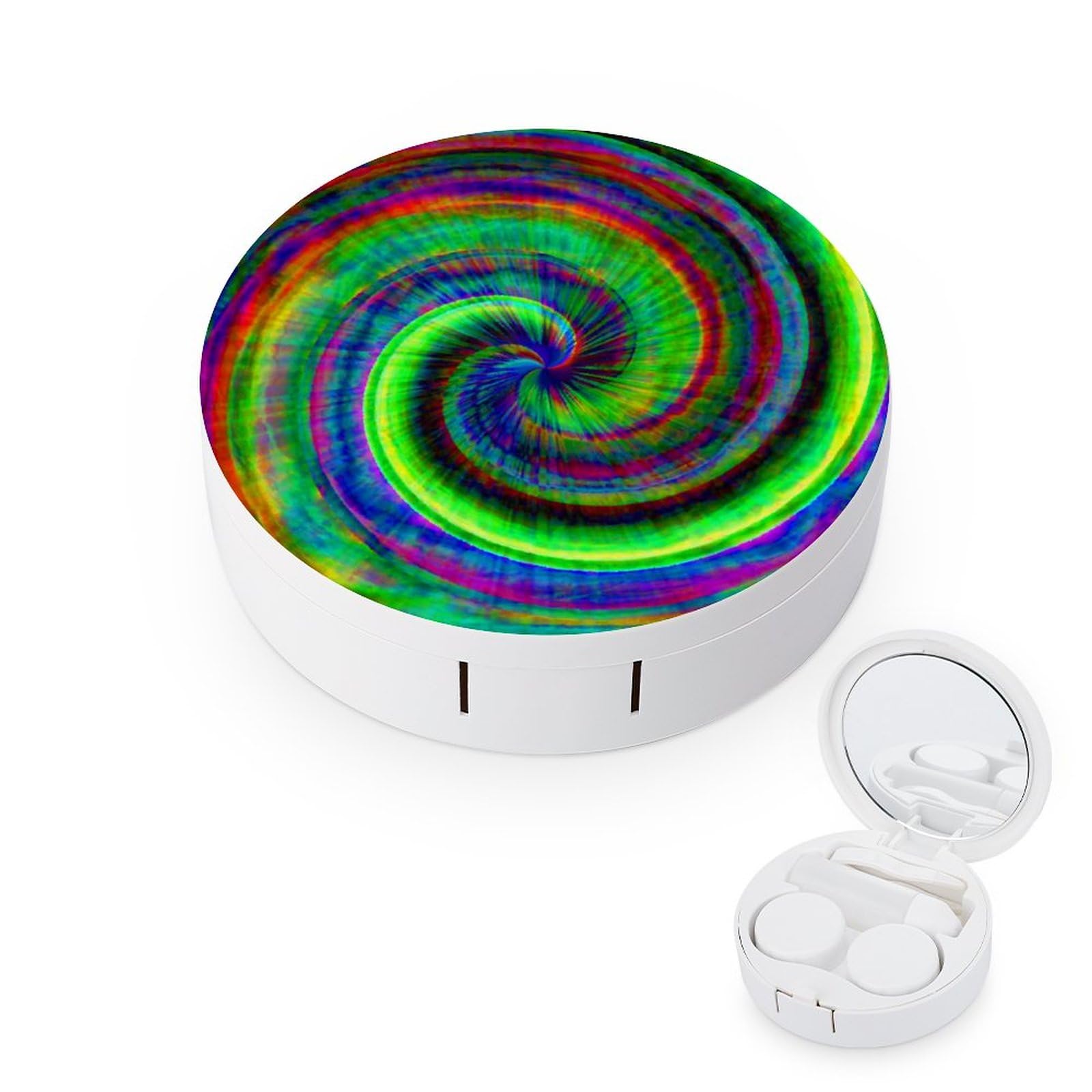 Psychedelic Tie Dye Swirl Art Contact Lens Case Travel Portable Travel Contact Lens Box with Mirror