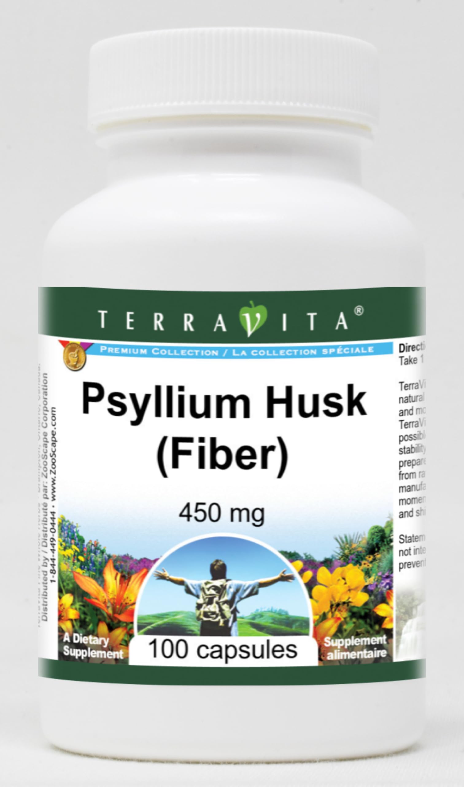 Psyllium Husk (Fiber) - 450 mg (100 capsules, ZIN: 511408) Packaged in the United States in a GMP certified facility (Good Manufacturing Practice). No fillers. Manufacturer: TerraVita Size: 100 capsules Easy-to-swallow Capsules in a sealed bottle. Ingredients: Gelatin, Water, Psyllium Husk - 450 mg