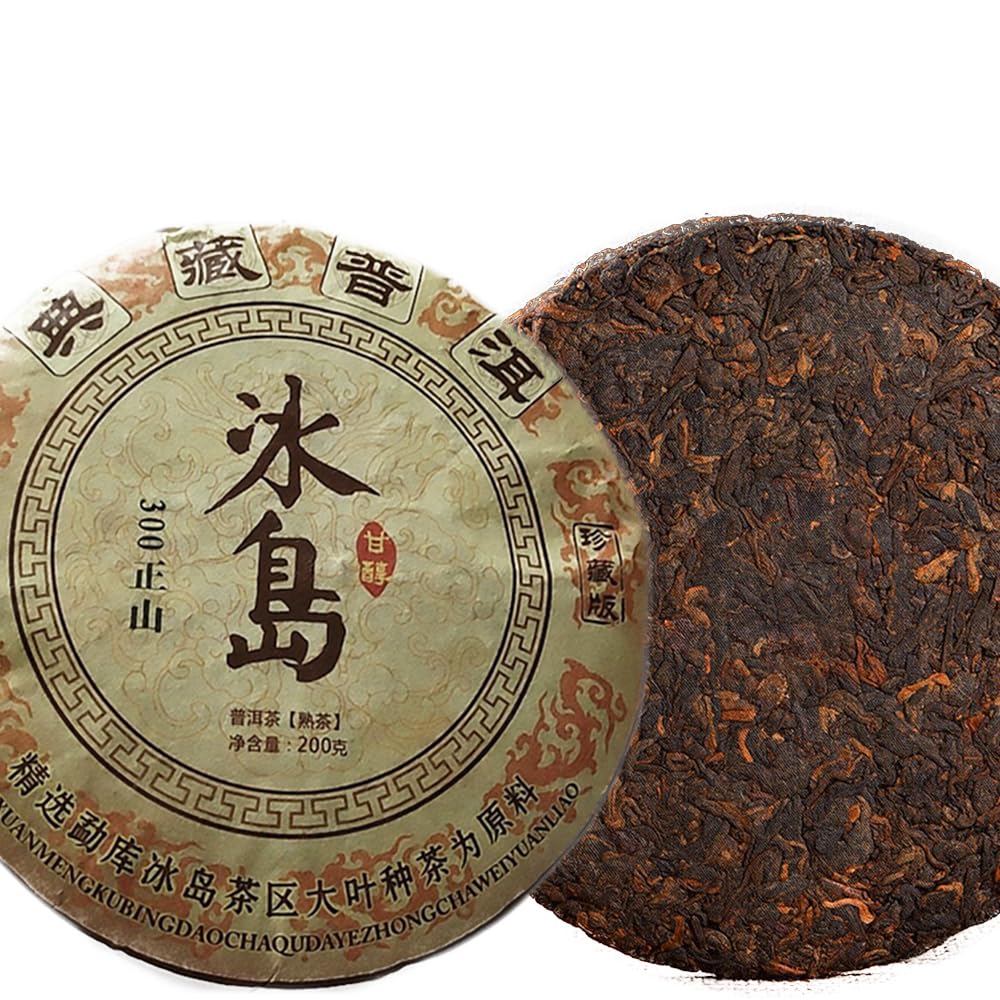 Pu'er tea, a specialty product from Yunnan Province in China, is a nationally protected geographical indication (PGI) product of China. The Pu'er tea tree grows to a height of 16 meters and a diameter of 90 centimeters at breast height. The buds have fine hairs, while the terminal buds have soft, white hairs. The leaves are thin, leathery, and oval. An old tree can reach 17 meters in height and have a diameter of over 1 meter at breast height. It has been widely cultivated. Tea trees grown in India and Myanmar were introduced from Yunnan. There are many ways to enjoy Pu'er tea, whether pure or blended. Pu'er tea has a rich, orange-yellow color, a long-lasting, complex aroma, a rich and mellow flavor, and can withstand prolonged steeping.It has been discovered that drinking tea is very beneficial to people's health. A cup of tea can relax and refresh you. This is why tea is becoming incregly popular. Chinese tea, in particular, has been cultivating and drinking tea for 4,000 years. Most Chinese people enjoy drinking tea. Tea is served not only in tea houses and restaurants but also at home. People also drink tea during breaks at the office or factory.Le thé Pu'er, un produit spécialisé de la province du Yunnan en Chine, est un produit d'indication géographique nationale de la Chine. Le thé Pu'er est un grand arbre, atteignant 16 mètres de haut et 90 centimètres de diamètre à hauteur de poitrine. Il y a des poils fins sur les bourgeons et des poils blancs et doux sur les bourgeons terminaux. Les feuilles sont fines, coriaces et ovales. Le vieil arbre mesure 17 mètres de haut et a un diamètre à hauteur d'homme de plus de 1 mètre. Il a été largement cultivé. Les théiers cultivés en Inde et au Myanmar ont été introduits du Yunnan. Il existe de nombreuses façons de boire du thé Pu'er, qu'il s'agisse de thé pur ou de thé mélangé. Le thé Pu'er a une riche soupe de thé jaune orangé, un arôme riche et durable, un arôme unique, un goût riche et moelleux et peut résister à une infusion à long terme.Il a été découvert que boire du thé fait beaucoup de bien à la santé des gens. Une tasse de thé peut vous détendre et vous rafraîchir. C'est pourquoi le thé devient de plus en plus populaire auprès des gens. Thé chinois. Cela fait 4 000 ans que les Chinois ont commencé à cultiver et à boire du thé. La plupart des Chinois aiment boire du thé. Le thé est servi non seulement dans les salons de thé et les restaurants, mais aussi à la maison. Les gens boivent aussi du thé pendant les pauses au bureau ou à l'usine.Pu'er mûr du Yunnan Gâteau au Thé Pu-Erh au Thé Noir Arbre ancien 200g