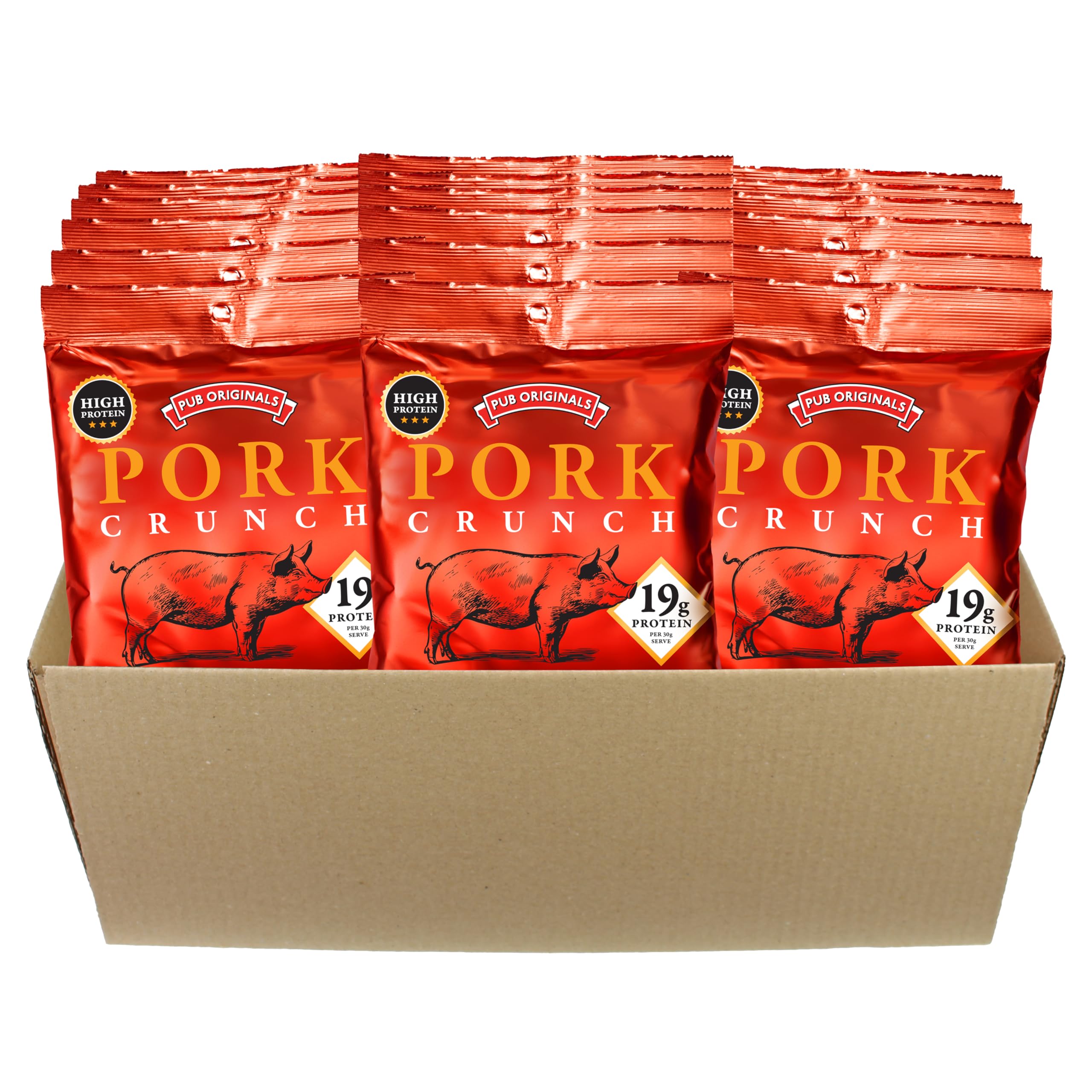 Introducing Pub Original Pork Crunch – a true gourmet delight for snack lovers. Our protein-rich snacks embody the perfect crispy crunch of traditional pub snacks with the hearty flavor of premium pork, making them an irresistible choice for adventurous eaters. Nestled in a convenient box of 18 x 30g packs, these delicious crispy pork chips are ideal for any occasion whether you're entertaining guests, indulging after a long day, or topping up your protein intake after the gym. Elevate your snacking game with these mouthwatering morsels that rival the best traditional chips and bacon bites. Each pack is packed with quality protein to support your low-carb lifestyle and keep your energy levels balanced throughout the day. They offer unique flavors similar to savory pork pies and freshly cooked pork belly. INGREDIENTS Pork bark (80 ), pork fat, sunflower oil, antioxidant (tert-butyl hydroquinone, citric acid), rusk (heat flour (calcium carbonate, iron, niacin, thiamine), salt, hydrolyzed vegetable protein, flavorings (flavorings, heat flavoring, salt, maltodextrin, caramelized sugar, sunflower oil), sugar, flavor enhancer Ancère (monosodium glutamate, disodium 5'-ribonucleotide), yeast extract, dextrose, paprika extract.Pub Original - Croquant de porc salé - Snacks riches en protéines - Boîte de 18 paquets de 30 gDESCRIPTION DU PRODUIT DESCRIPTION DU PRODUIT Nous vous présentons Pub Original Original Pork Crunch – un véritable délice gastronomique pour les amateurs de collations Nos collations riches en protéines incarnent le croquant croustillant parfait des collations traditionnelles de pub avec la saveur copieuse du porc de qualité supérieure, ce qui en fait un choix irrésistible pour les mangeurs aventureux. Encastrés dans une boîte pratique de 18 paquets de 30 g, ces délicieuses chips croustillantes de porc sont idéales pour toutes les occasions que vous receviez des invités, que vous vous fassiez plaisir après une longue journée ou que vous complétiez votre apport en protéines après la salle de sport. Améliorez votre jeu de collations avec ces morceaux alléchants qui rivalisent avec les meilleures chips traditionnelles et les bouchées de bacon. Chaque paquet regorge de protéines de qualité pour soutenir votre mode de vie à faible teneur en glucides et garder vos niveaux d'énergie équilibrés tout au long de la journée. Ils offrent des saveurs uniques semblables aux tartes au porc salées et à la poitrine de porc fraîchement cuite. INGRÉDIENTS Écorce de porc (80 ), graisse de porc, huile de tournesol, antioxydant (hydroquinone tertiaire-butyle, acide citrique), biscotte (farine de chaleur (carbonate de calcium, fer, niacine, thiamine), sel, protéines végétales hydrolysées, arômes (arômes, arôme thermique, sel, maltodextrine, sucre caramélisé, huile de tournesol), Sucre, rehausseur de saveur Ancère (glutamate monosodique, 5'-ribonucléotide disodique), extrait de levure, dextrose, extrait de paprika.