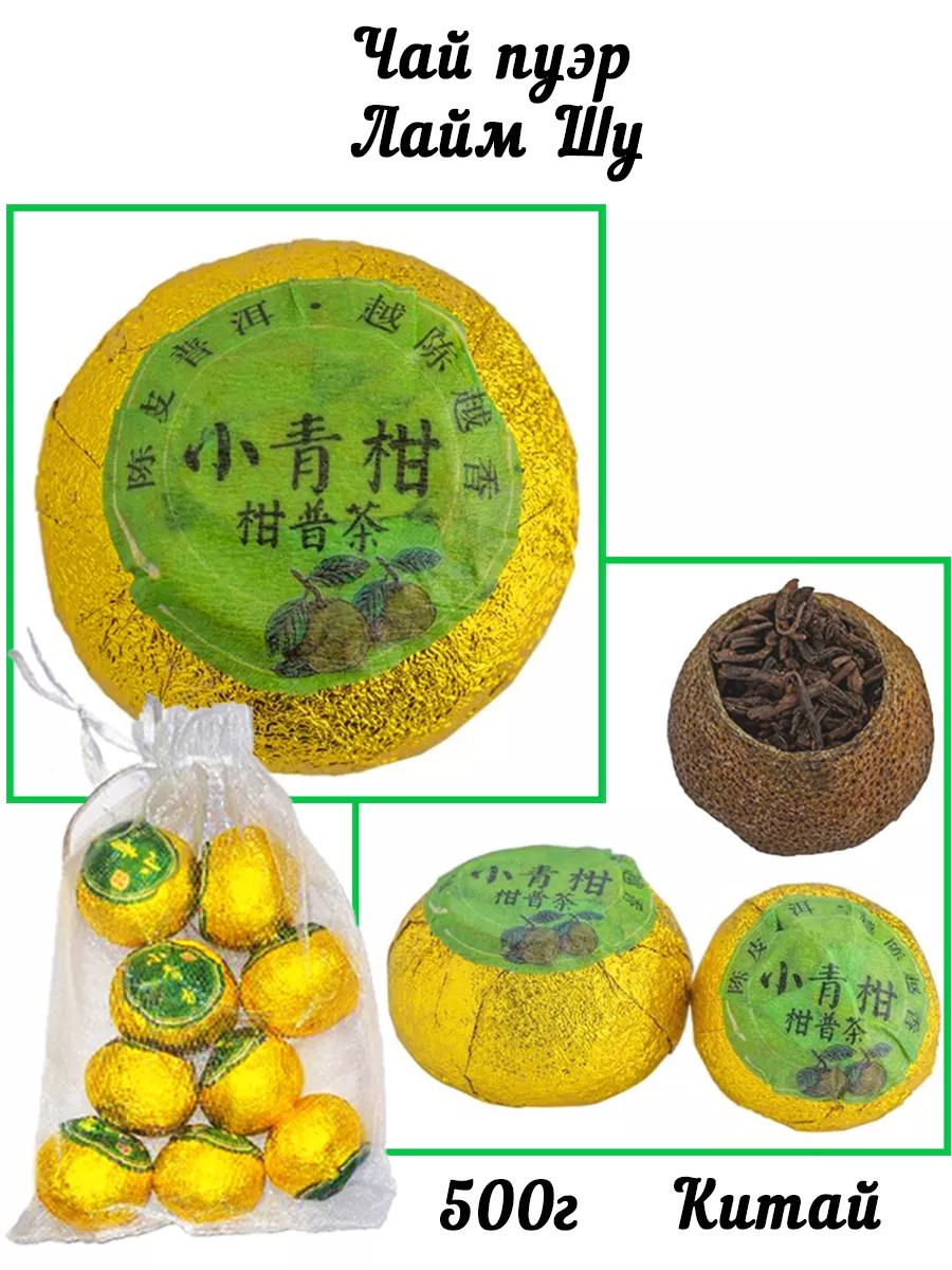 Чай пуэр Лайм Шу 500г и 10 фильтр пакетов (комплект)