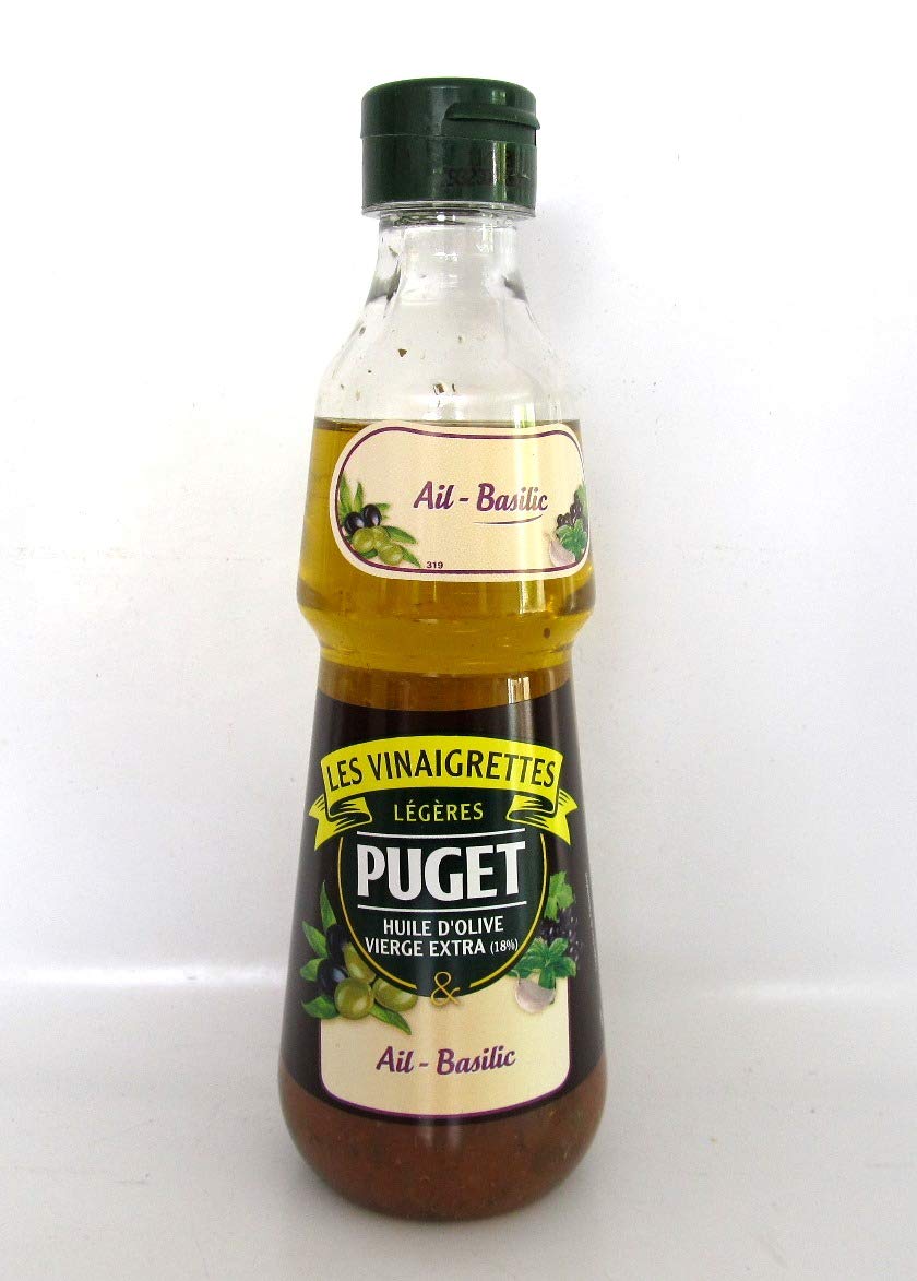 PUGET Vinaigrette Salad Dressing Olive Oil Xerex Garlic Basil 330 ml Light Vinaigrette Extra Virgin Olive Vinegar, Sherry Vinegar, Garlic and Basil Ingredients: water, extra virgin olive oil 20 , rapeseed oil, tomato pulp, vinegar 8 (contains sulfite), white wine vinegar, garlic 3.2 , salt, basil 1.5 , honey, flavorings, thickener: xanthan gum. Country of origin: France. INGREDIENTS Ingredients: water, extra virgin olive oil 20 , rapeseed oil, tomato pulp, xerex vinegar 8 (contains sulfite), white wine vinegar, garlic 3.2 , salt, basil 1.5 , honey, flavorings, thickener: xanthan gum. INSTRUCTIONS FOR USE Shake the bottle before use. See morePUGET Vinaigrette Sauce à salade à l'huile d'olive, vinaigre, ail et basilic 330 mlDESCRIPTION DU PRODUIT DESCRIPTION DU PRODUIT PUGET Vinaigrette Sauce Salade Huile d'Olive Xerex Ail Basilic 330 ml Vinaigrette Légère Sauce à la Vigne d'Olive Extra, Vinaigre (Essig) de Xeres, Ail et Basilic Ingrédients : eau, huile d'olive extra vierge 20 , huile de colza, tomate souxvinaigre 8 (contient LFITE), blanc Vinaigre de vin, ail 3,2 , sel, basilic 1,5 , miel, arômes, épaississant : xanthane. Pays d'origine : France. INGRÉDIENTS Ingrédients : eau, huile d'olive extra vierge 20 , huile de colza, moelle de tomate, xerexvinaigre 8 (contient du sulfite), vinaigre de vin blanc, ail 3,2 , sel, basilic 1,5 , miel, arômes, épaississant : xanthane. MODE D'EMPLOI Secouez le flacon avant utilisation. Voir plus