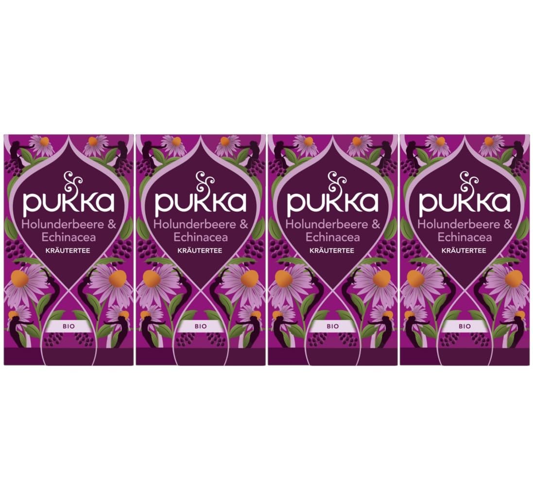 Ingredients: Licorice root¹, ginger root¹, echinacea leaves¹ and roots¹ (10 ), beetroot¹, anise seeds¹, rosehip¹, elderflowers¹ (8 ), peppermint leaves¹, orange peel¹, elderberries¹ (6 ), hibiscus¹ flowers¹, orange ginseng oil flavoring¹, natural currant flavoring. (¹Ingredients from organic farming (99.9 )) 36 FairWild certified ingredients (licorice, elderflower, rosehip, hibiscus) bound by dry matter. 38 Fairtrade ingredients, certified to the Fair for Life standard - licorice, elderflower, rosehip, elderberries. Directions: Pour freshly boiled water over the ingredients and let steep for 5 to 15 minutes. P.when('A').execute(function(A) { A.on('a:expander:toggle_description:toggle:collapse', function(data) { window.scroll(0, data.expander. expander[0].offsetTop-100) }) }) Security Warning Does Not Apply See MoreAs part of our "Liberated and Alive" family, this herbal blend, made with ethically sourced and sustainable vegan ingredients, is caffeine-free. Our organic Elderberry Echinacea Fruit Tea is expertly blended by our in-house herbalist, combining the latest scientific knowledge with traditional herbal wisdom. It can support your body naturally. The stimulating properties of ginger can help awaken your senses and warm you from within. The properties of elderberry, anise seed, and echinacea can have a calming and strengthening effect. Our organic Elderberry Echinacea Fruit Tea is perfect for those special moments in everyday life. The tea blend combines fruity elderberries with the floral aromas of echinacea and the spicy taste of anise seeds and ginger in an invigorating mix. Due to changes in formulation, there may be slight variations. However, it remains 100 Pukka quality.Ingrédients Ingrédients : racine de réglisse¹, racine de gingembre¹, feuilles d'échinacée¹ et racines¹ (10 ), betteraves rouges¹, graines d'anis¹, cynorrhodon¹, fleurs de sureau¹ (8 ), feuilles de menthe poivrée¹, écorce d'orange¹, baies de sureau¹ (6 ), hibiscus¹ Fleurs¹, orange arôme d'huile de coquille de gène¹, arôme naturel de groseille. (¹ Ingrédients issus de l'agriculture biologique (99,9 )) 36 d'ingrédients certifiés FairWild (réglisse, fleurs de sureau, églantier, hibiscus) liés à la masse sèche. 38 d'ingrédients issus du commerce équitable, certifiés selon la norme Fair for Life - réglisse, fleurs de sureau, cynorrhodon, baies de sureau. Mode d'emploi Versez de l'eau fraîchement bouillie et laissez infuser pendant 5 à 15 minutes. P.when('A').execute(function(A) { A.on('a:expander:toggle_description:toggle:collapse', function(data) { window.scroll(0, data.expander. expander[0].offsetTop-100) }) }) Avertissement De Sûreté Ne s'applique pas Voir plusDans le cadre de notre famille « Libérée et vivante », cette composition à base d'herbes provenant d'ingrédients végétaliens éthiques et durables ne contient pas de caféine. Notre thé aux fruits bio « baies de sureau et échinacée » est mélangé à l'intérieur par notre expert en herbes interne et combine les connaissances scientifiques les plus modernes avec les connaissances traditionnelles en herbes. Il peut soutenir votre corps de manière naturelle. Les propriétés stimulantes du gingembre peuvent aider à réveiller vos sens et à vous réchauffer de l'intérieur. Les propriétés de la baies de sureau, des graines d'anis et de l'échinacée peuvent avoir un effet apaisant et fortifiant. Notre thé aux fruits bio « baies de sureau et échinacée » est mélangé à l'intérieur par notre expert en herbes interne et combine les connaissances scientifiques les plus modernes avec les connaissances traditionnelles en herbes. Il peut soutenir votre corps de manière naturelle. Notre thé aux fruits bio « baies de sureau et échinacée » est parfait pour les moments forts du quotidien. La composition du thé combine des baies de sureau fruitées avec des arômes floraux d'échinacée et le goût épicé des graines d'anis et du gingembre dans un mélange vivifiant. En raison des changements de conception, il peut y avoir différentes variantes. Mais il reste à 100 de qualité Pukka.Pukka Thé aux fruits bio « Sureau Echinacea » Sureau, Echinacea, Graines d'anis et Gingembre Pour des moments forts au quotidien Lot de 4 80 sachets de thé