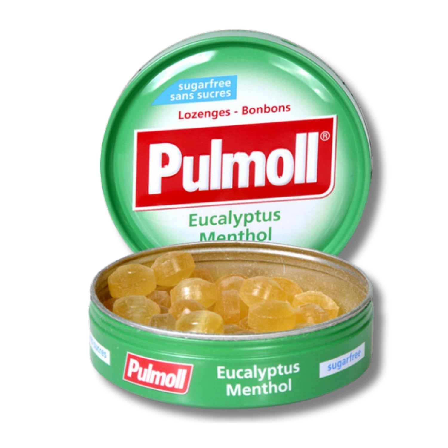 These refreshing throat lozenges combine the natural aroma of menthol and eucalyptus oil: Pulmoll Eucalyptus Menthol sugar-free lozenges provide an intense feeling of freshness. Sweetened with stevia extract, Pulmoll Eucalyptus Menthol sugar-free throat lozenges contain menthol and eucalyptus oil. Pulmoll lozenges help maintain tooth mineralization and are lower in calories because they contain isomalt instead of sugar. Pulmoll throat lozenges are soothing for the throat because they contain menthol.