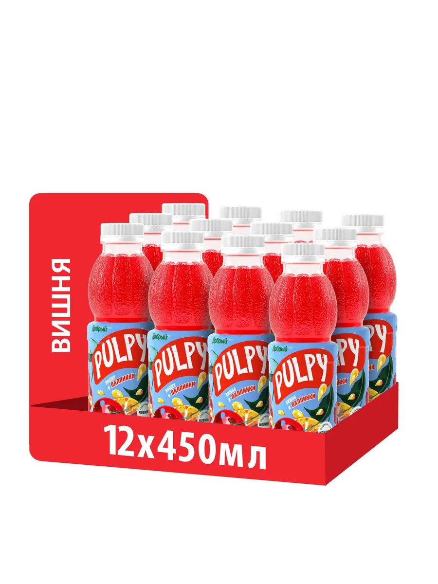Pulpy вишня - это вкус спелой вишни в неповторимом сочетании с натуральной мякотью цитрусовых «палпинок», которые делают напиток уникальным, насыщенным и ярким!
