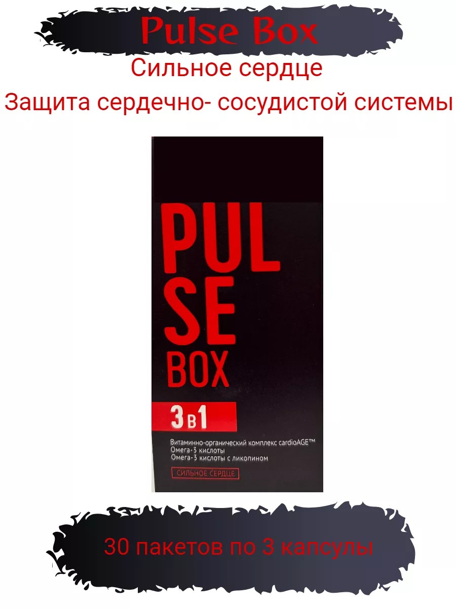 Трехуровневая защита сердечно-сосудистой системы для каждого современного человека: поддержание клеточной регенерации, снижение уровня вредного холестерина и усиление антиоксидантной активности. Современный комплекс помогает нормализовать работу сердца и сосудов и скорректировать негативное влияние окружающей среды и неправильного рациона. 3D-защита сердца и сосудов от преждевременного старения . Уникальный витаминно-органический комплекс. Укрепление сосудов: Омега-3 кислоты укрепляют стенки сосудов, уменьшают вязкость крови и снижают уровень вредного холестерина низкой плотности. Очищение от вредного холестерина: Ликопин оказывает мощное антиоксидантное действие, предотвращает окисление вредного холестерина и образование свободных радикалов. PULSE BOX помогает сердцу оставаться сильным, сосудам чистыми! Способ применения: 1 месяц. Один пакет раз в день во время еды. Противопоказания - индивидуальная непереносимость компонентов продукта. Перед применением рекомендуется проконсультироваться с врачом.