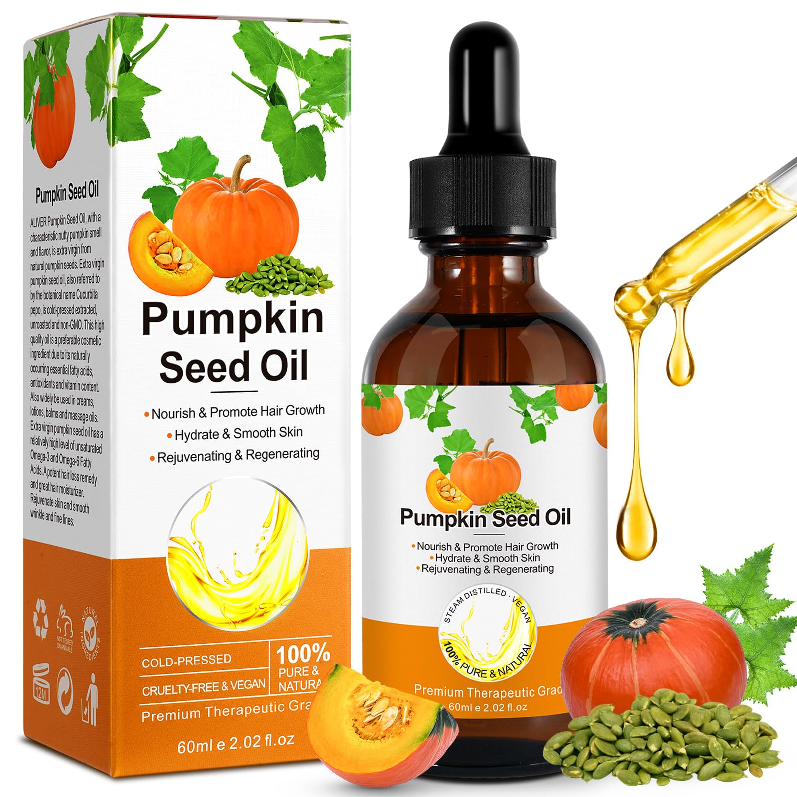 pumpkin seed oil organic INGREDIENTS Pumpkin Seed SAFETY WARNING for external use only See more?Multi-Purpose Pumpkin Oil?: This skin oil can be used alone or added into skin care products like creams, lotions, balms and massage oils. You can use it as face serum every morning and night or as carrier oil. Or you can use it together with gua sha tools to lift face or massage body. ?Easy Absorb Face and Body Oil?: This pumpkin essential oil is light, no greasy, can be absorbed rapidly into the face, neck, body without leaving an oily residue behind. For hair and scalp, warm this oil in your hands and massage for 5 minutes being sure to cover and massage your entire scalp and hair. Some slight tingling is normal. Leave on overnight, or wash out after 10 minutes. ?Nature Skin Moisturizer?: The high vitamins, mineral and omega content makes pumpkin seed oil an excellent lifting oil for dry mature and damaged skin. Moisturize and reduce fine lines, regenerate skin cells. This face oil helps to support the health and structure of skin, reduces the appearance of wrinkles and signs of ageing. Add this facial oil into daily skin care products, it's good for women and men body skin face nails care. ?Organic Pumpkin Oil Cold Pressed ?: 100 pure and natural, Cold pressed extraction without damaging the original active substances, makes the pumpkin seed essential oil better for skin care and hair growth . Not Diluted, Non-GMO, No Additives, Chemical Free, Alcohol Free. ?Hair Growth Oil?: Our pumpkin seed oil has a high level of unsaturated Omega-3 and Omega-6 fatty acids. This pumpkin hair oil has actually been proven to treat hair loss, moisturize and smooth dry and damaged hair, nourish scalp and strengthen hair growth and hair thickness. Pumpkin oil for hair is suitable for all hair type, especially dry scalp treatment, damaged hair growth and curly frizzy hair.
