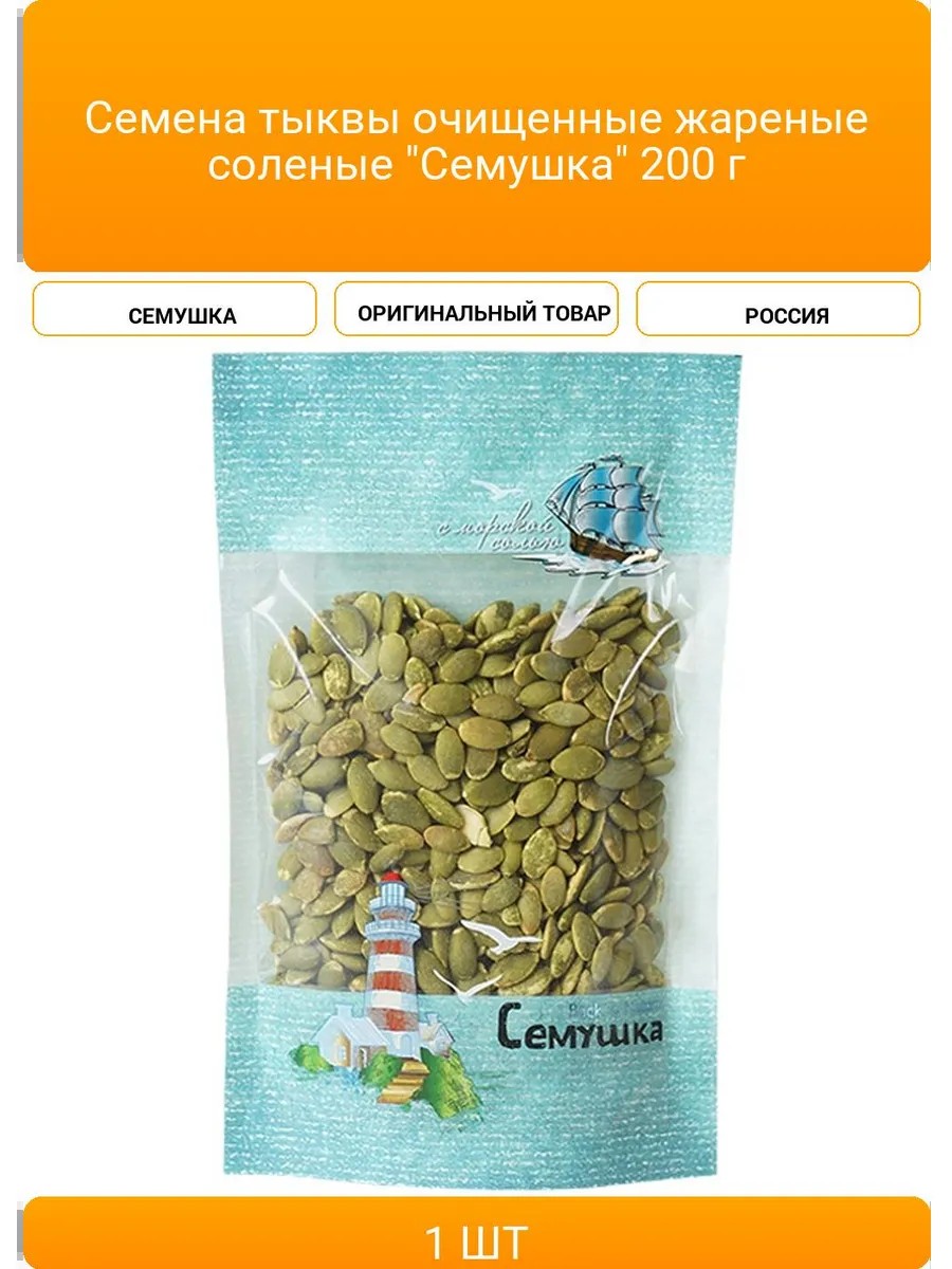 | Комплектация | Семена тыквы очищенные жареные соленые "Семушка" 200 г |