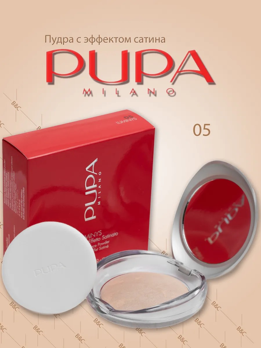 Легендарная выравнивающая запеченая пудра с зеркалом и спонжем Luminys Baked Face Powder (оригинал) Pupa стала настоящей классикой и успела полюбиться многим девушкам со всех уголков мира. Нежная шелковистая текстура позволяет наносить пудру равномерно. Ее легко можно наслаивать, регулируя степень покрытия от легкой вуаль к среднему. От прозрачного финиша к плотному. Оригинальная сияющая пудра Pupa с эффектом фотошоп, не ложится маской, не забивает поры, гипоаллергенная, водостойкая. Формула обогащена маслом жожоба которое обеспечивает увлажняющее и защитное действие, а мерцающие частицы blur создают на коже блюр-эффект. Благодаря абсорбирующим ингредиентам, финишная пудра превосходно закрепляет макияж и придает коже матовый эффект на весь день. Фиксирующая пудра пупа тон 01 и пудра пупа цвет 04 подходит для светлой, фарфоровой кожи и для блондинок с белой кожей. Пудра пупа 05, самый универсальный оттенок, который подходит для блондинок и брюнеток и для тех, кто ищет натуральный оттенок. Пудра пупа 06 с эффектом загара - идеальна для смуглой, темной и загорелой кожи, ее можно использовать как бронзатор, румяна или скульптор контуринг.