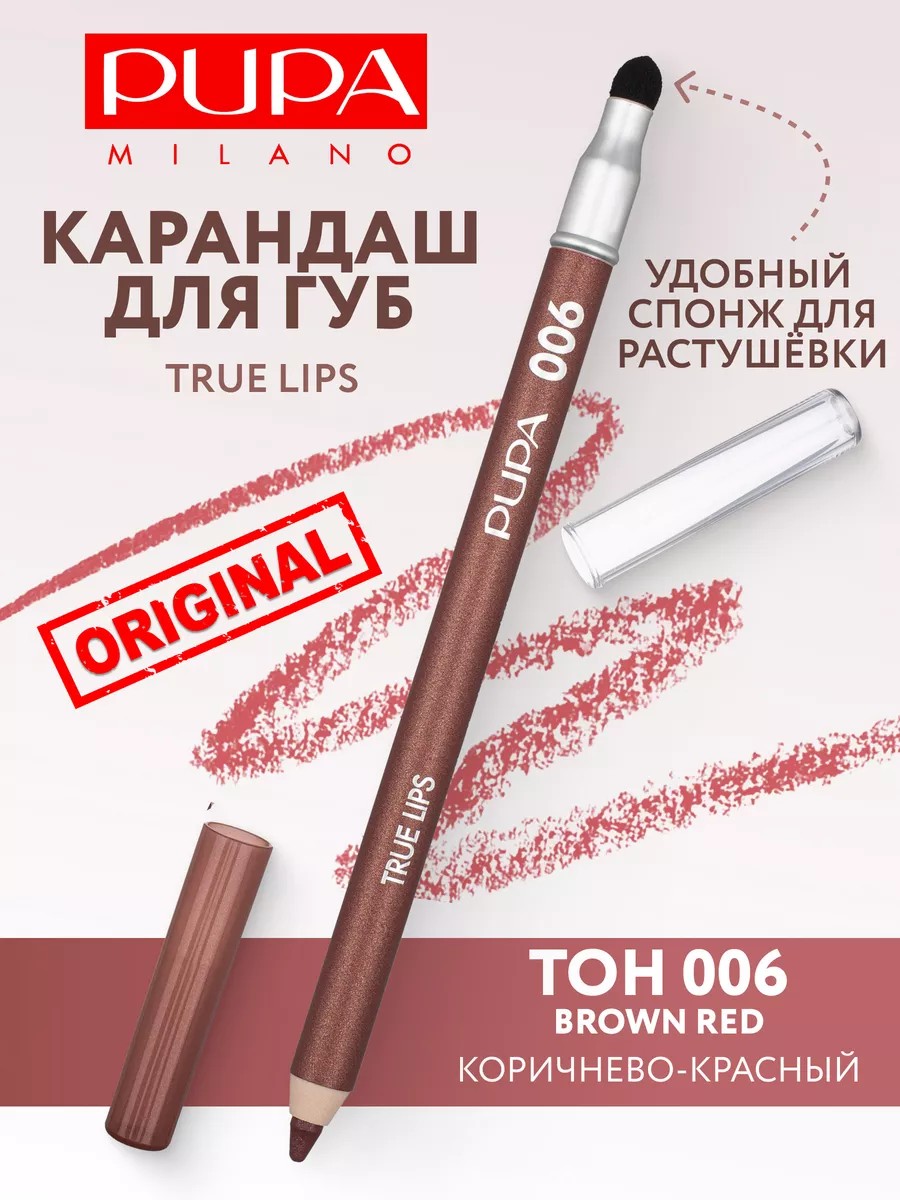 Карандаш для губ растушевывающийся True Lips тон 006 коричнево-красный итальянской марки Пупа обладает мягкой сливочной консистенцией и высокой степенью пигментации. Подводка для губ в виде карандаша это профессиональное косметическое средство для контуринга и создания идеальной формы.