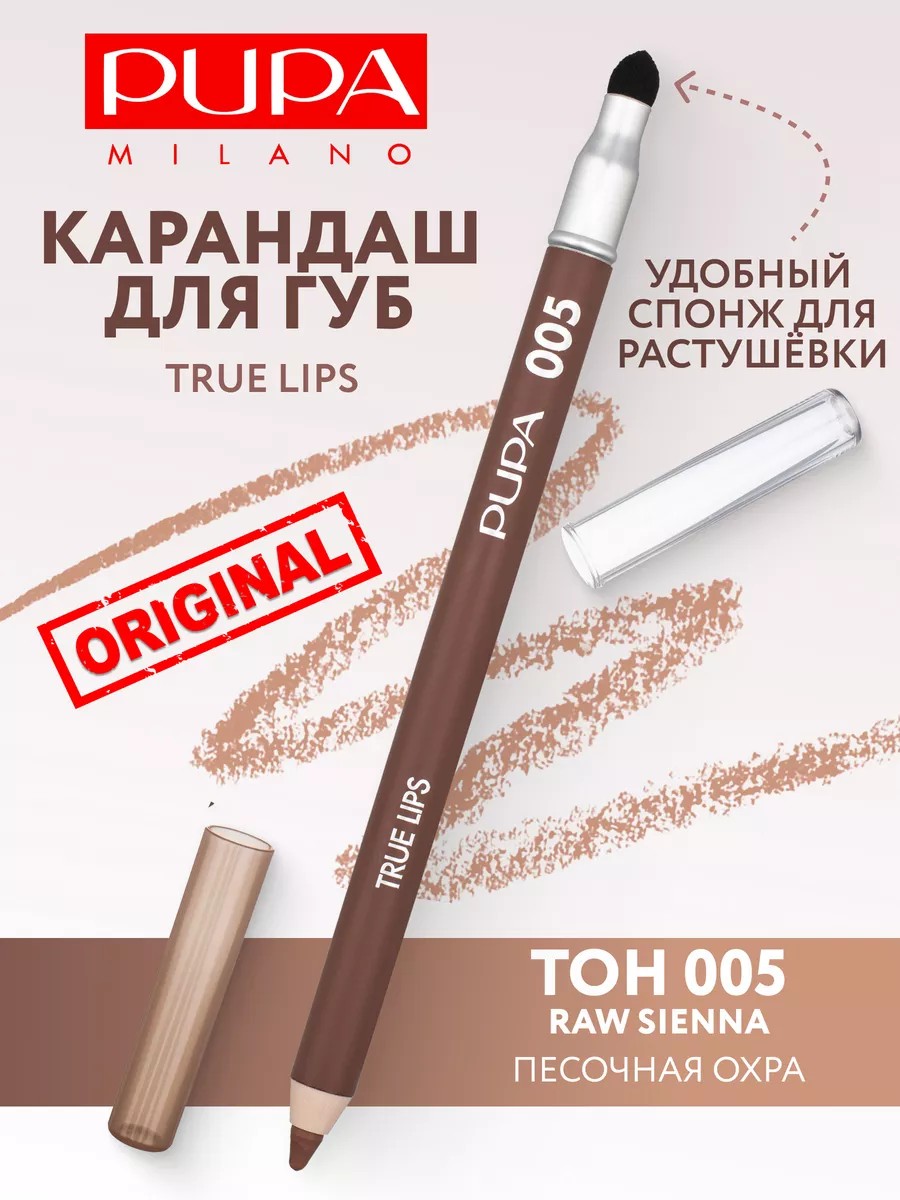 Карандаш для губ растушевывающийся True Lips тон 005 - песочная охра итальянской марки Пупа обладает мягкой сливочной консистенцией и высокой степенью пигментации. Подводка для губ в виде карандаша это профессиональное косметическое средство для контуринга и создания идеальной формы.
