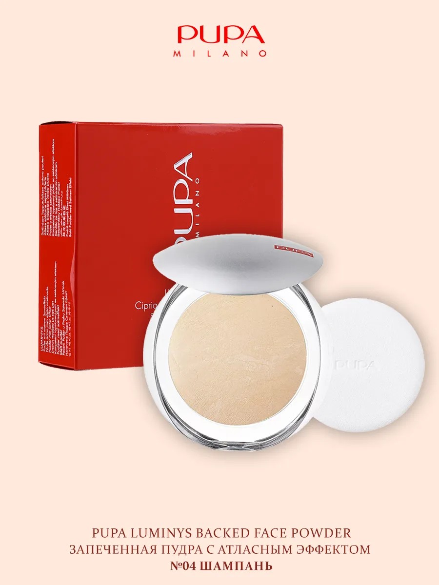 Pupa Baked Powder 04 Champagne. The legendary Italian Pupa Luminys Silky Baked Face Powder features a unique baking technology and a smoothing silk effect that evens out skin tone with one light touch. A must-have for any makeup bag! Pupa powder conceals imperfections and gives the face a natural, healthy glow. Its lightweight, imperceptible texture is suitable for all skin types. It mattifies excess shine, while the satin finish creates a subtle highlighter effect.