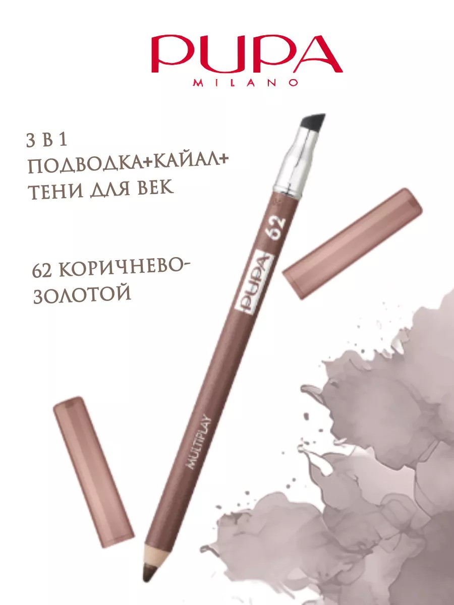 Золотой коричневый карандаш для глаз Pupa Multiplay 62. Итальянская косметика для макияжа Пупа – это отличное качество, хороший состав и мастхэв любой косметички. Каял карандаш для глаз Pupa Multiplay идеально подходит для слизистой и для межресничек.