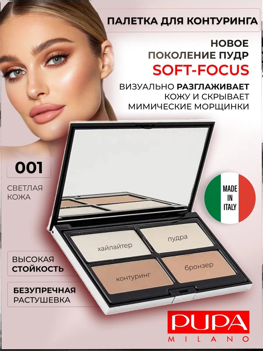 Pupa Пупа палетка для контуринга лица с хайлайтером 001