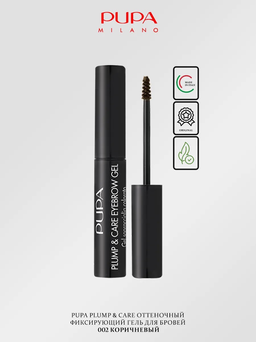 Pupa Plump&Care фиксирующий гель для бровей 002 Коричневый