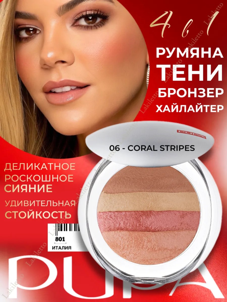 | Комплектация | Пудра-Румяна для лица LUMINYS BAKED ALL OVER - 1 шт; четырехцветные бронзатор хайлайтер для тела Пупа вамп |