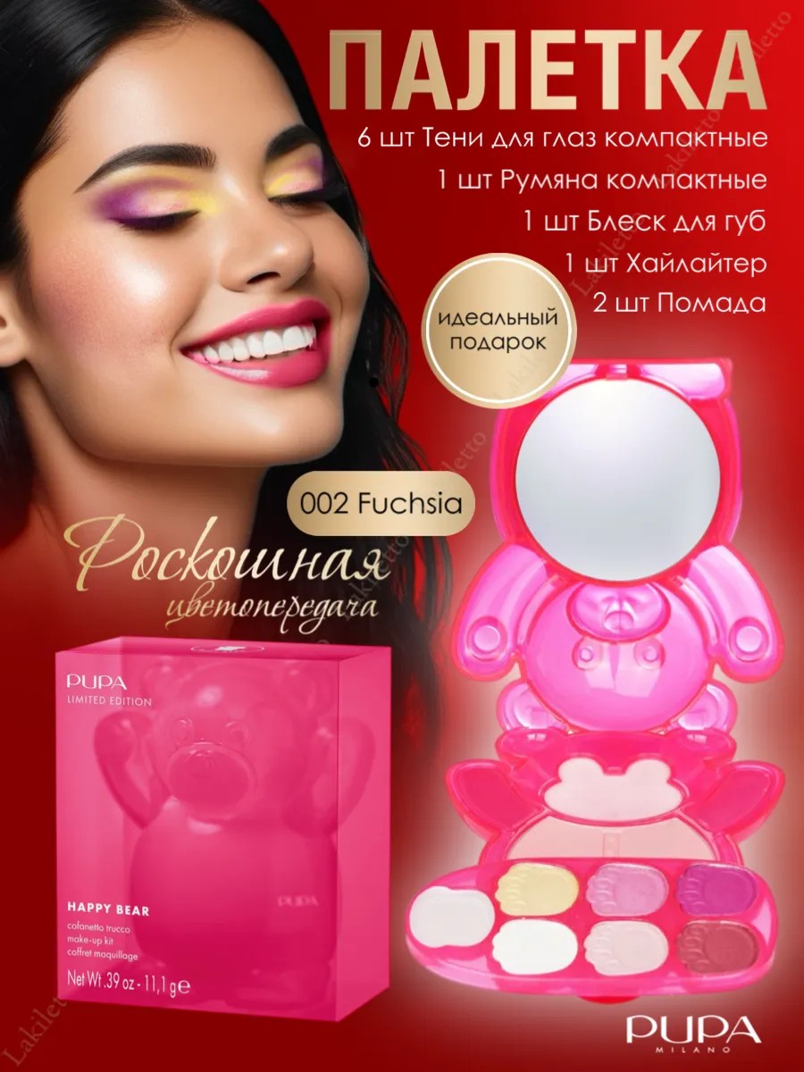 Pupa Тени палетка HAPPY BEAR 002 Розовые и золотые оттенки