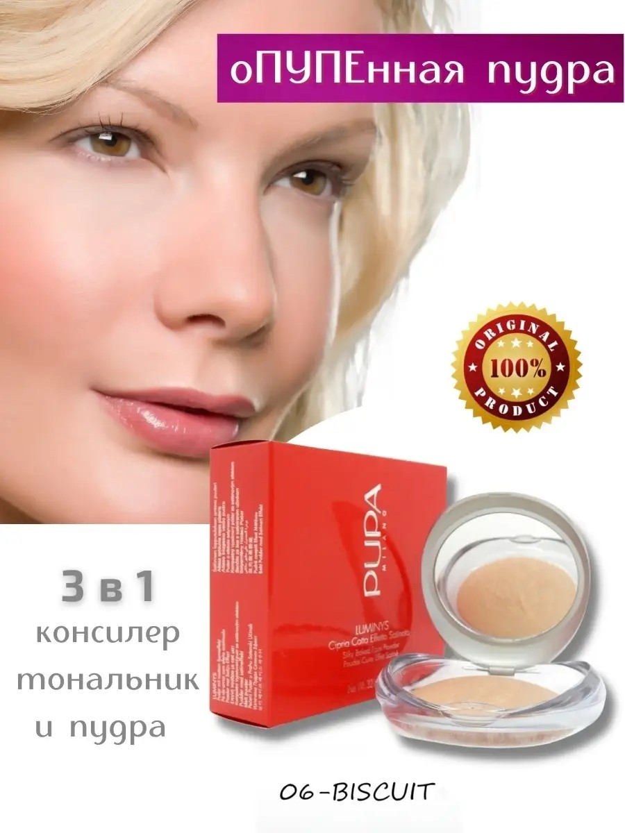Тональная пудра компактная запеченная CC Luminys Baked Face Powder 06 Biscuit, печенье, тон 06. Эта фиксирующая пудра для лица может стать идеальным вариантом для тех, кто не любит тональные основы. Полная замена тональному крему - пудра-фотошоп от Pupa: эффект ухоженной и гладкой кожи с деликатным свечением.Благодаря уникальной технологии запекания, пудра обладает мягкой текстурой, легко распределяется по лицу. Скрывает несовершенства, поры и недостатки, контролирует жирный блеск. Это настоящая находка для жирной и комбинированной кожи! Закрепляет макияж, выравнивает, матирует, придавая коже сатиновое сияние и Blur эффект. Входящее в состав масло жожоба оказывает увлажняющее действие, обеспечивает правильный уход и защиту. Только естественная красота без эффекта маски! Подходит для нормальной, жирной, сухой и комбинированной кожи. Используйте светлую палитру 01 и 04 тона, как хайлайтер и основу под тени. А золотистые цвета 05 и 06 тона -как бронзирующее средство и румяна. В коллекции: 01 тон - арт. 38765772, 04 тон - арт. 38765775; 05 тон - арт. 38765774 , 06 тон- арт. 38765776