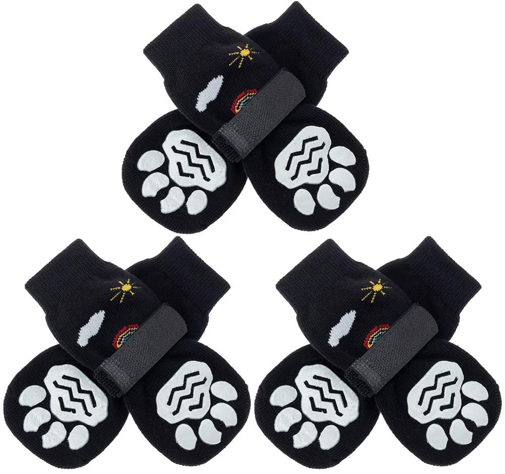 PUPTECK Double Sides Anti-Slip Dog Socks 3 Pairs Soft Paw Protector with Adjustable Straps Strong Traction Control for Indoor Hardwood Floors Medium (Pack of 6) Black(Rainbow)