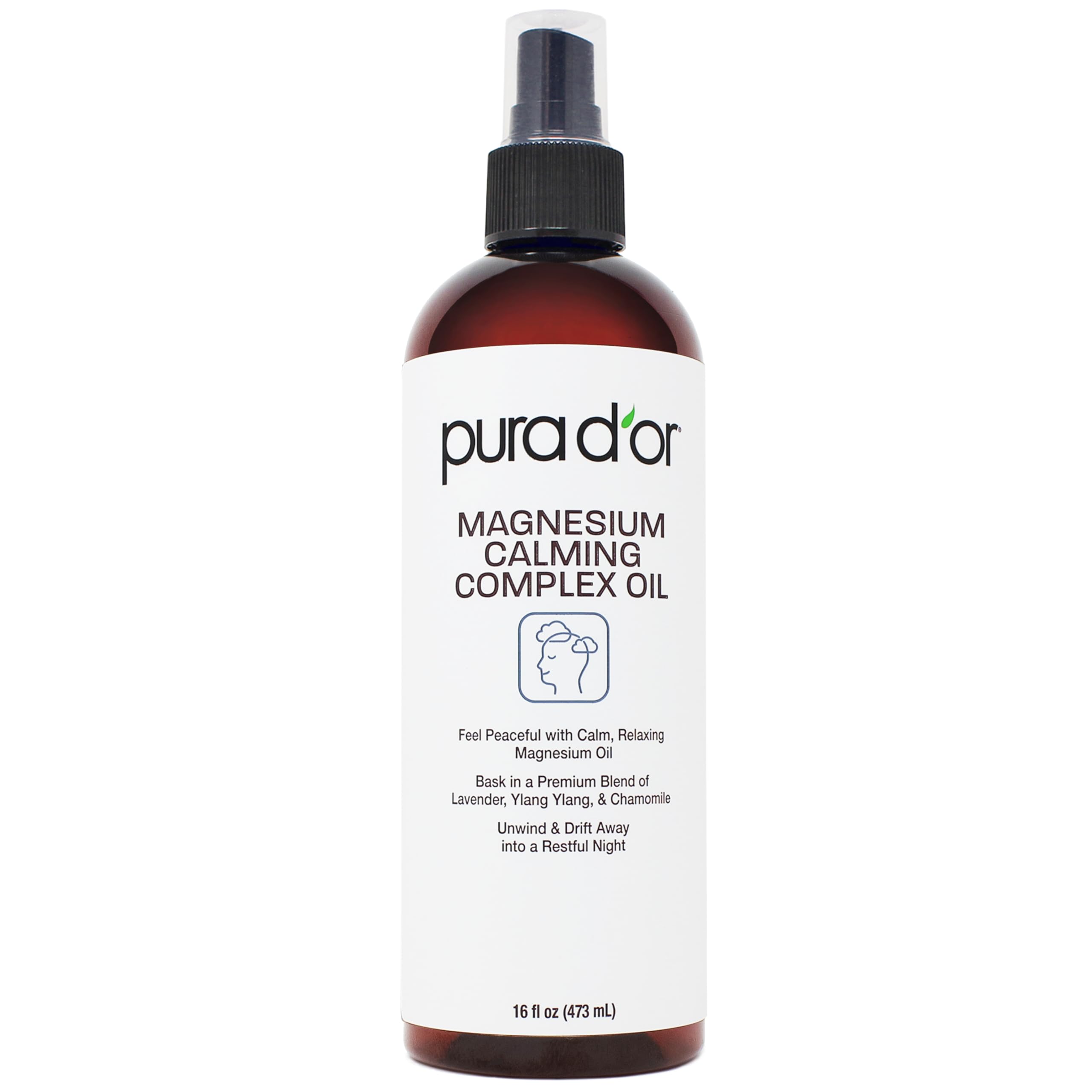 PURA D'OR 16 Oz Magnesium Oil Water Based Spray - Calming Topical Blend with Lavender Ylang Ylang Chamomile - Fast-Absorbing Skin-Friendly Formula for a Soothing Sensation