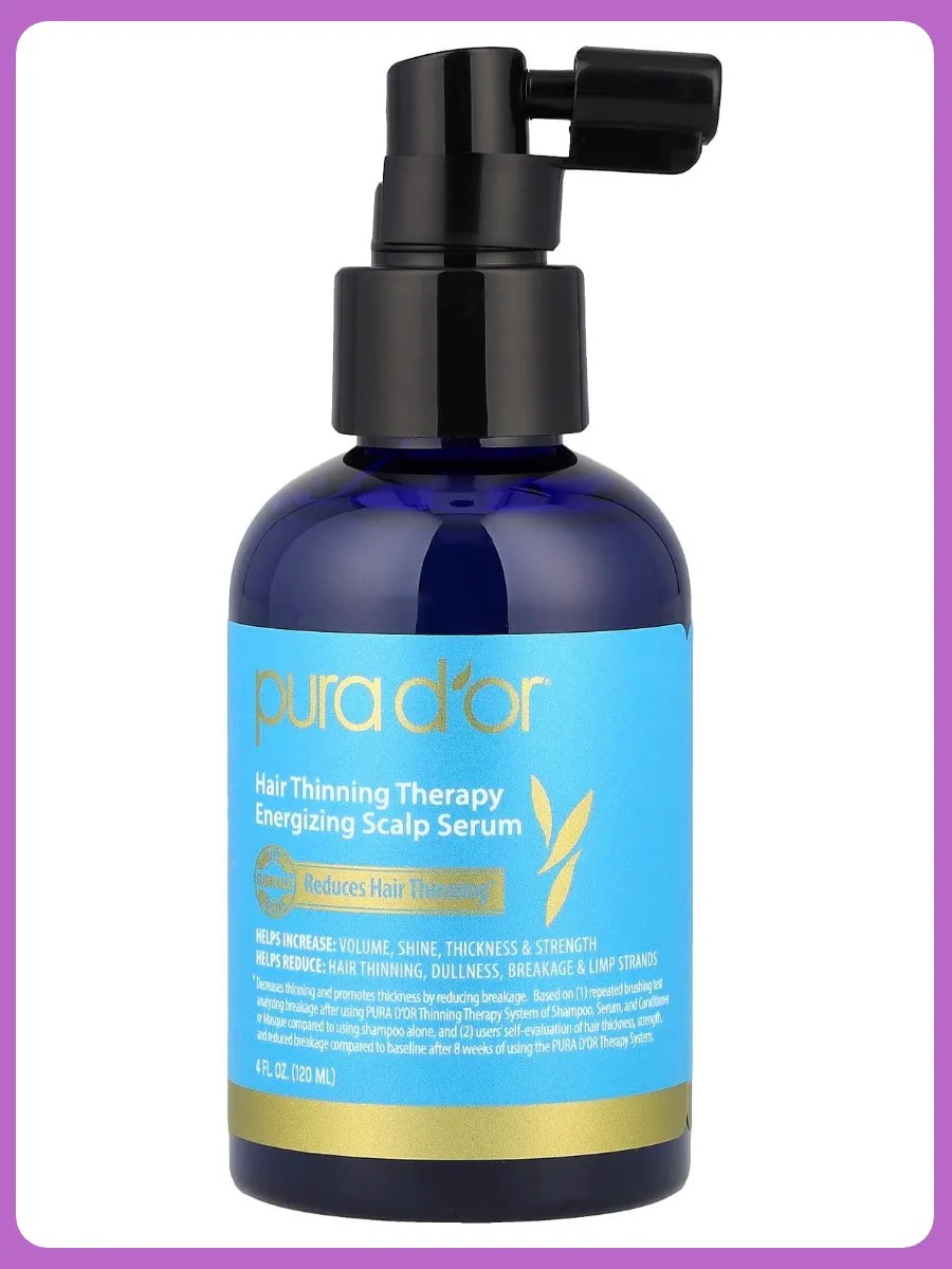 Представляем восстанавливающую сыворотку Pura D'or, идеальное решение против истончения волос! Наша тонизирующая сыворотка для кожи головы ускоряет результаты действия нашей системы против выпадения волос. Наша эксклюзивная натуральная формула питает кожу головы, а запатентованная смесь растительных ингредиентов помогает укрепить пряди и увеличить объём, а также помогает уменьшить раздражение кожи головы, выпадение волос из-за ломкости, ослабление прядей и сухость. Сыворотка Pura D'or прекрасно увлажняет и защищает от повреждений, что делает её подходящей для всех типов волос. Без парабенов и сульфатов, она обеспечивает безопасный и эффективный уход.