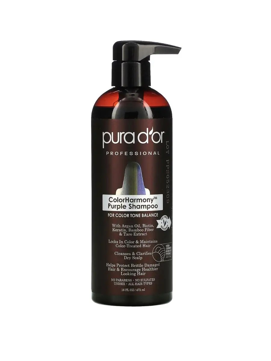 ColorHarmony Purple Shampoo by Pura D'or contains an intensive blend of premium ingredients Qualities that cleanse, protect, and tone color-treated hair.
