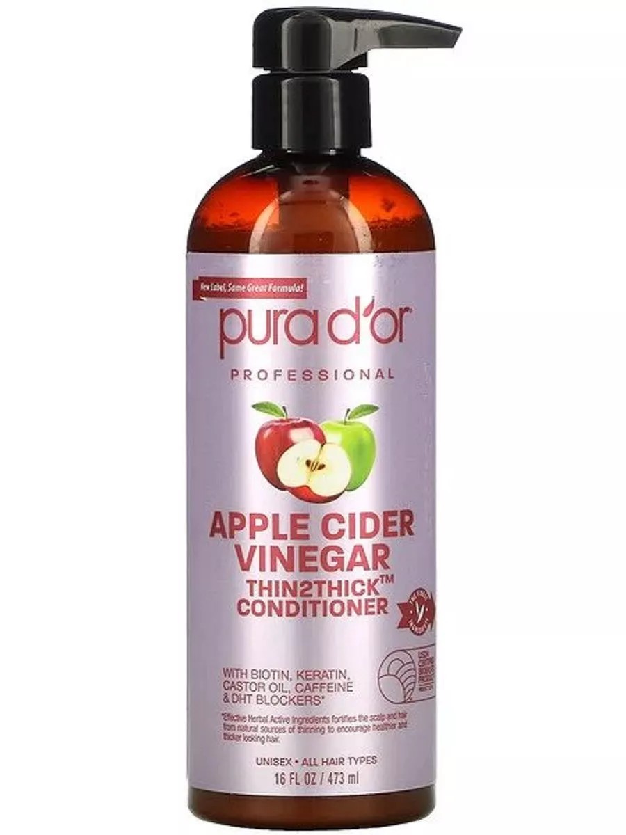 Pura D'Or Apple Cider Vinegar Conditioner nourishes hair, adds shine and radiance, eliminates breakage, and improves the condition of the hair and scalp.