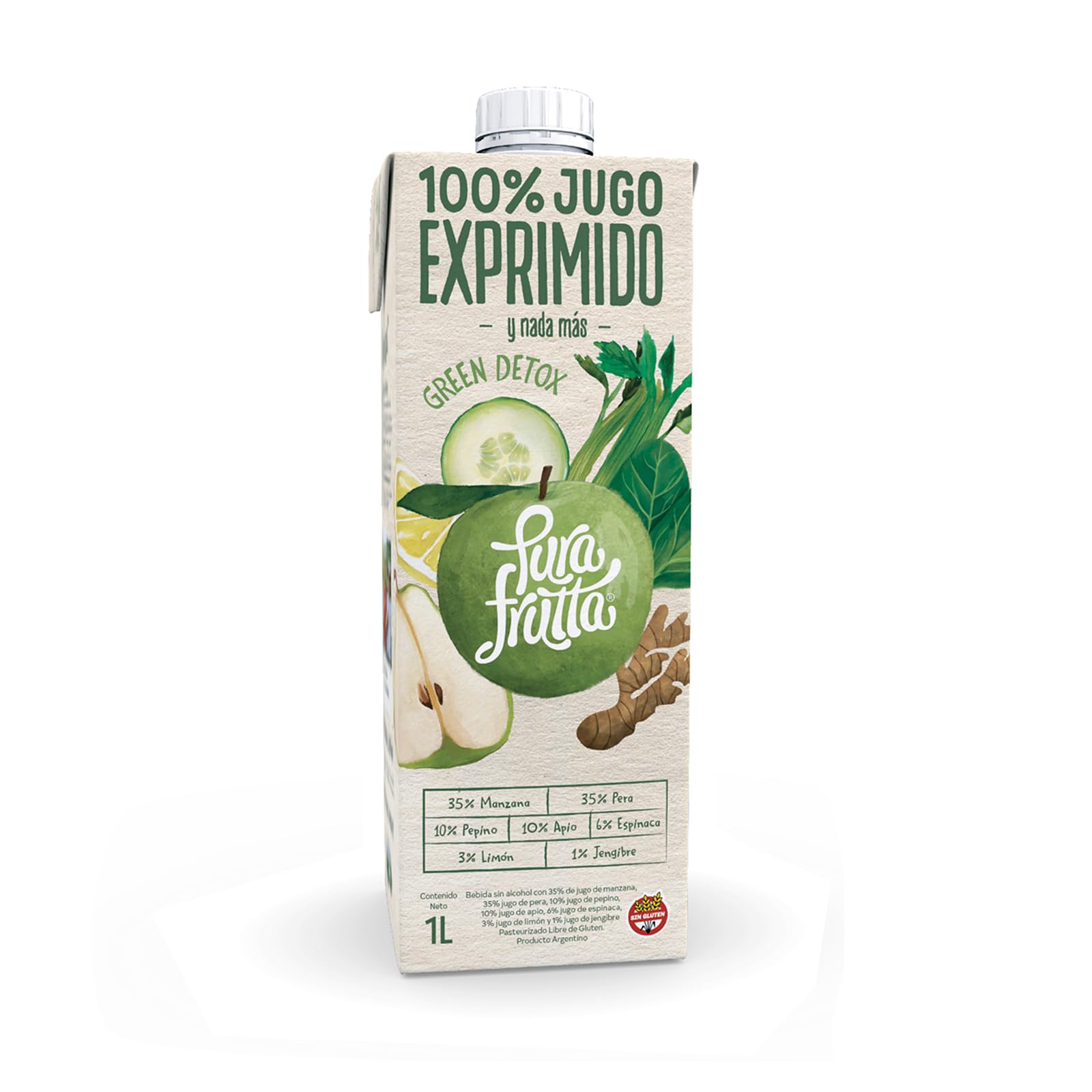 JUICE BOXES FOR EVERYDAY ROUTINES (8 x 1L): Includes 8 cartons of 33.8 fl oz (1L)—great for breakfast, post-workout refreshment, smoothies, or stocking the fridge. Serve chilled refrigerate after opening. NO SUGAR ADDED CLEAN LABEL: No sugar added (no sweeteners), no preservatives, and no artificial flavors or colors—just the ingredients you expect from a premium juice blend. NUTRIENT-RICH GREENS NATURALLY OCCURRING ANTIOXIDANTS: A simple way to add more produce to your routine—made with fruits and vegetables that naturally contain nutrients and naturally occurring antioxidants found in ingredients like spinach, celery, and cucumber. REAL INGREDIENTS CLEAR PERCENTAGES: Crafted with 35 apple juice, 35 pear juice, 10 cucumber, 10 celery, 6 spinach, 3 lemon, and 1 ginger—a balanced green drink with bright citrus and a gentle ginger finish. GREEN JUICE DETOX BLEND (100 PURE PRESSED JUICE): Pura Frutta Green Detox is a refreshing green juice made from real fruits veggies—pressed juice, not from concentrate (NFC)—for a clean, crisp taste in every sip.