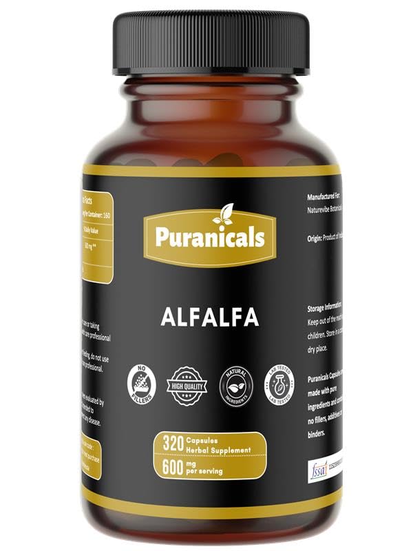 Puranicals Alfalfa Capsules - 320 Capsules | 100% Pure & Natural | Rich in Vitamins & Minerals | Supports Detox & Wellbeing | Non-GMO Gluten-Free Herbal Supplement | 600mg per Serving