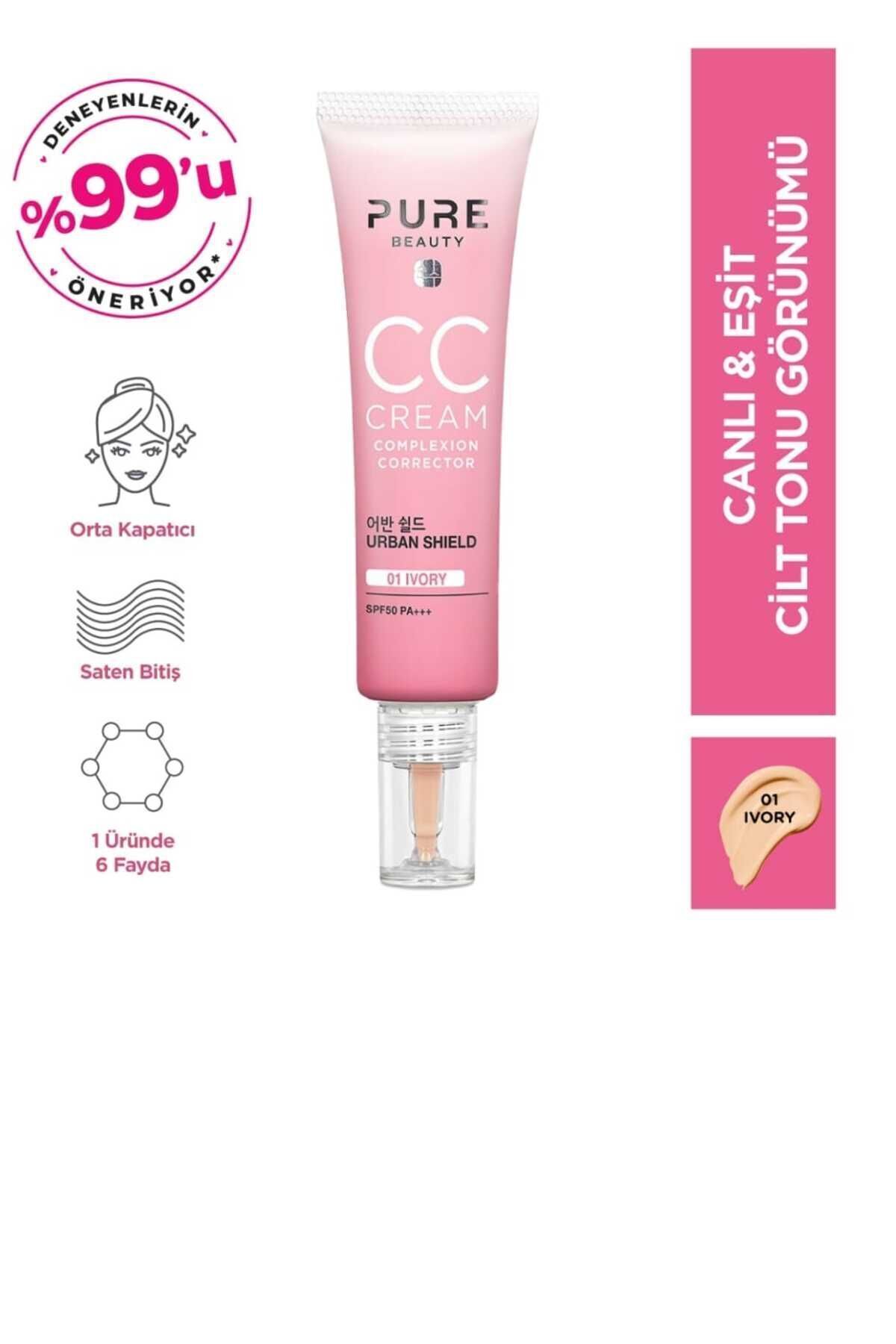 PURE BEAUTY CC Cream Spf50 Pa+++ Ivory paraben free 30 ml Pinkrain