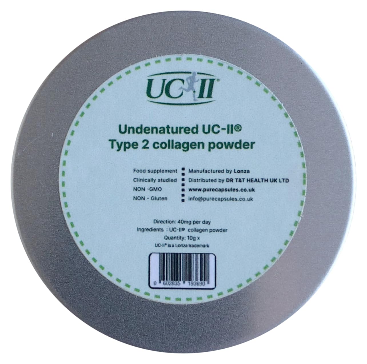 UC-II Undenatured Type II Collagen Powder is a patented product manufactured by Lonza. UC-II is a Lonza trademark for this special joint supplement made from undenatured type II collagen powder. UC-II is the brand name for chicken cartilage containing undenatured type II collagen (native form. Not to be confused with conventional denatured collagen). UC-II is the only joint ingredient clinically proven to dramatically improve joint flexibility—15 times better than placebo¹—and helps joints feel 10 years younger. Why UC-II stands out in the joint support market: A small, effective daily dose of 40 mg. Odorless, BSE-free, GMO-free, hypoallergenic, ETO-free, and non-irradiated. Can be added to existing formulations, replace ingredients, or launched as a standalone product. Clinically studied for joint health in healthy subjects. Peer-reviewed. Canine and equine joint health research. UC-II is supported by two published clinical research studies. Randomized, double-blind, placebo-controlled studies in healthy subjects showed that 40 mg of UC-II significantly improved knee extension compared to placebo. UC-II subjects exercised longer before experiencing joint discomfort and recovered more quickly from joint discomfort after exercise compared to baseline. With a user-friendly formulation, the 40 mg daily dose of UC-II allows manufacturers to formulate effective products in a small tablet size. The small dosage also allows manufacturers to add value to multi-ingredient formulations. UC-II is made from chicken sternum cartilage using a patented, low-temperature, non-enzymatic manufacturing process that ensures natural levels of undenatured type II collagen and its biological activity. UC-II works in the small intestine through a process called oral tolerance to help slow the breakdown of type II collagen in the joints. Other forms of type II collagen sold as food ingredients are denatured or hydrolyzed. Categories: joint health, canine joint health, equine joint health INGREDIENTS type 2 collagenOdorless, BSE-free, GMO-free, hypoallergenic, ETO-free, and non-irradiated. Type 2 collagen, 40 mg daily, 10 g is a 250-day supply. Free measuring scoop included one scoop weighs approximately 40 mg. Product uses: tablets, capsules, food, and beverages. Fill the powder into an empty size 4 vegetable capsule, or add it to your food or beverages. Patented UC-II features a triple USP: 1. Unique mode of action as the UC-II product triggers an anti-inflammatory cascade and repairs the cartilage matrix. 2. Solid scientific body and proven effective for healthy populations, found to improve joint comfort, mobility, and flexibility, and significantly better than glucosamine, chondroitin, and placebo in subjects with osteoarthritis. 3. Convenient with a daily dosage of only 40 mg. Why UC-II stands out in the joint support market. A small, effective daily dose of 40 mg that is odorless, BSE-free, GMO-free, hypoallergenic, ETO-free, and non-irradiated. It can be added to existing formulations, replace ingredients, or launched as a standalone product. Clinically studied for joint health in healthy subjects. Peer-reviewed research on canine and equine joint health. UC-II is manufactured from chicken sternum cartilage using a patented, low-temperature, non-enzymatic manufacturing process that ensures natural levels of undenatured type II collagen and its biological activity. UC-II works in the small intestine through a process called oral tolerance to help slow the breakdown of type II collagen in the joints. Other forms of type II collagen sold as food ingredients are denatured or hydrolyzed. UC-II is supported by two published clinical research studies. Randomized, double-blind, placebo-controlled studies in healthy subjects showed that 40 mg of UC-II significantly improved knee extension compared to placebo. UC-II subjects exercised longer before experiencing joint discomfort and recovered more quickly from joint discomfort after exercise compared to baseline. UC-II is the only clinically proven joint ingredient to significantly improve joint flexibility—15 times better than placebo¹—and helps joints feel 10 years younger. UC-II is a Lonza trademark for this special joint supplement made from undenatured type II collagen powder. UC-II is the brand name for chicken cartilage containing undenatured type II collagen (native form. Not to be confused with conventional denatured collagen). 10 g is a small amount we sell by weight, not size.Lonza UC-II Poudre de collagène de type 2 en poudre de collagène non dénaturée de type II Fabriqué par Lonza, lot de 10 g 250 jours d'approvisionnement, cuillère de remplissage de capsules gratuiteDESCRIPTION DU PRODUIT DESCRIPTION DU PRODUIT La poudre de collagène non dénaturée de collagène de type II UC-II est un produit breveté fabriqué par Lonza. UC-II est une marque de commerce Lonza pour ce complément spécial pour les articulations en poudre de collagène de type II non dénaturé. UC-ll est le nom de marque du cartilage de poulet contenant du collagène de type ll non dénaturé (forme native. A ne pas confondre avec le collagène dénaturé conventionnel). UC-ll est le seul ingrédient articulaire cliniquement prouvé pour améliorer considérablement la flexibilité articulaire - 15 fois mieux que le placebo1 - et aide les articulations à se sentir 10 ans plus jeunes. Pourquoi l'UC-II se démarque sur le marché du soutien articulaire. Petite dose quotidienne efficace de 40 mg sans odeur, sans ESB, sans OGM, hypoallergénique, non ETO, et non irradiée. Peut être ajouté aux formulations existantes, remplacer les ingrédients ou être lancé de manière autonome. Cliniquement étudié pour la santé des articulations chez des sujets sains Publié par des pairs La recherche sur la santé articulaire du chien et du cheval UC-II est soutenue par deux études de recherche clinique publiées. Des recherches randomisées, en double aveugle, contrôlées pa